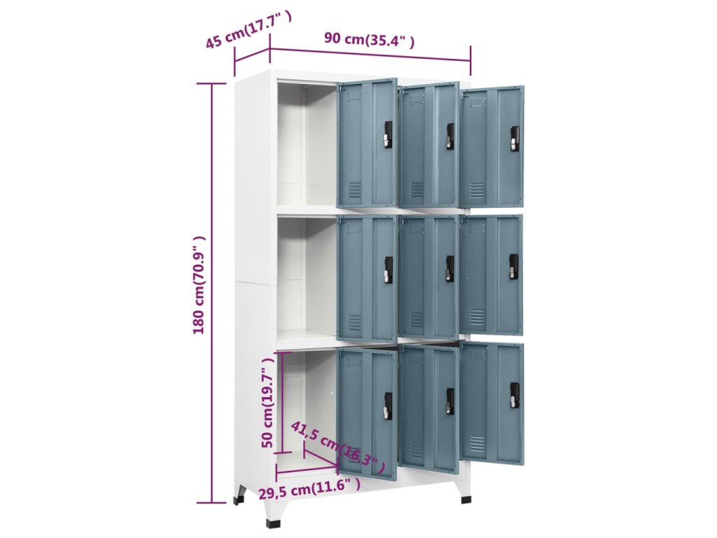 Táto úložná skrinka je vyrobená z ocele, vďaka čomu je odolná a ľahko sa čistí. Každá priehradka je vybavená uzamykateľnými dverami s ventilačnými otvormi. Skrinka má dostatok úložného priestoru na uloženie oblečenia a iných osobných vecí. Držiak na menovky vám navyše umožňuje prehľadne triediť vaše položky. Táto skrinka je vhodná do škôl a kancelárií na uloženie rôznych vecí.