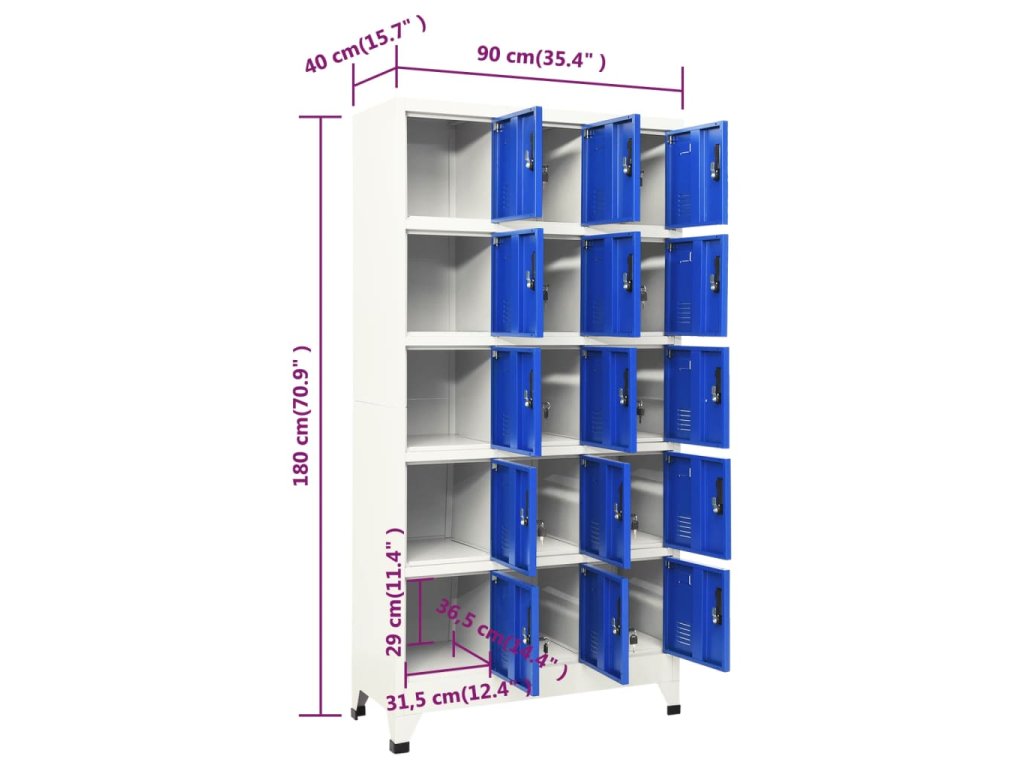 Táto úložná skrinka je vyrobená z ocele, vďaka čomu je odolná a ľahko sa čistí. Každá priehradka je vybavená uzamykateľnými dverami s ventilačnými otvormi. Skrinka má dostatok úložného priestoru na uloženie oblečenia a iných osobných vecí. Držiak na menovky vám navyše umožňuje prehľadne triediť vaše položky. Táto skrinka je vhodná do škôl a kancelárií na uloženie rôznych vecí.
