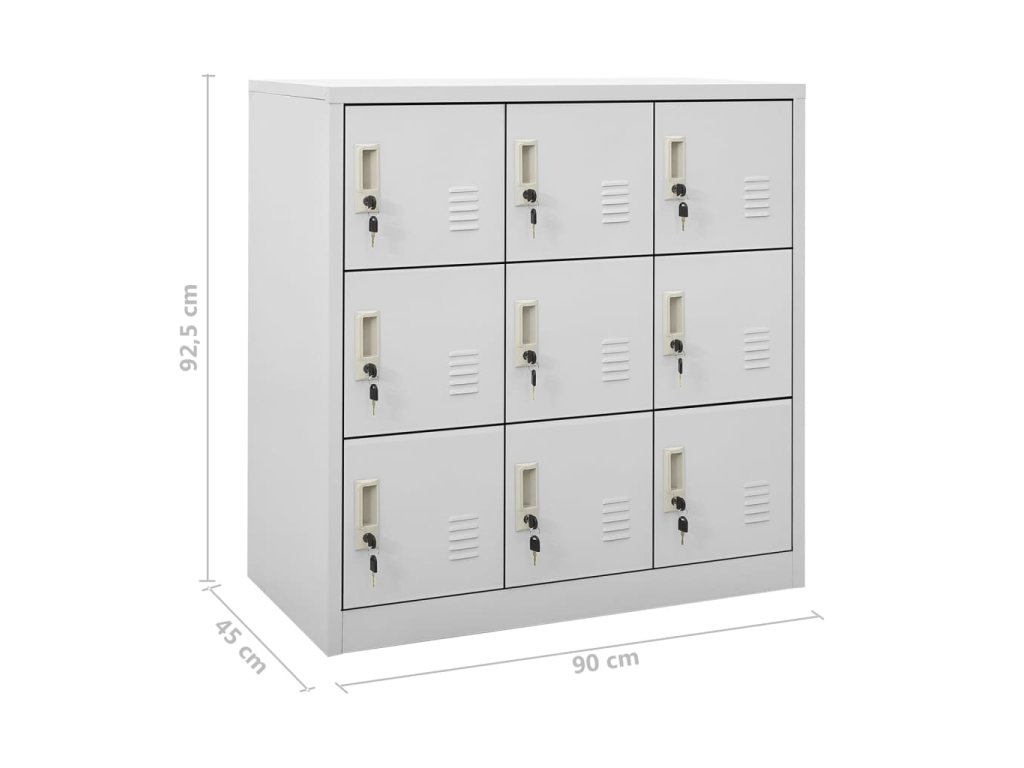 Táto úložná skrinka je vyrobená z ocele, vďaka čomu je odolná a ľahko sa čistí. Táto skladovacia skriňa má zámky a dostatok úložného priestoru pre rôzne predmety, ako sú topánky, tašky, knihy, spisy a podobne. Táto skrinka je vhodná do škôl a kancelárií na uloženie rôznych vecí.