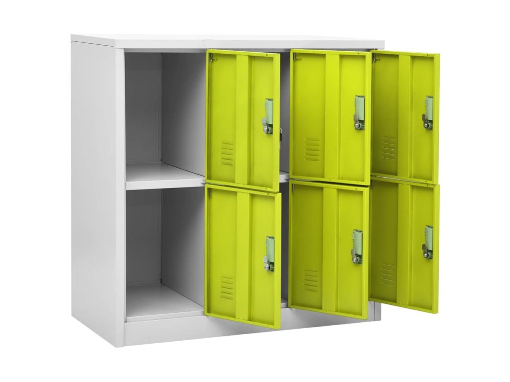 Táto úložná skrinka je vyrobená z ocele, vďaka čomu je odolná a ľahko sa čistí. Táto skladovacia skriňa má zámky a dostatok úložného priestoru pre rôzne predmety, ako sú topánky, tašky, knihy, spisy a podobne. Táto skrinka je vhodná do škôl a kancelárií na uloženie rôznych vecí.