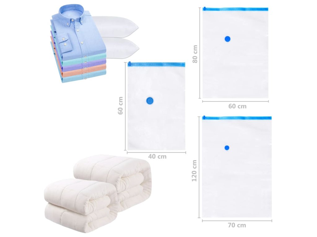 Do našich úložných vákuových vreciek môžete uložiť vaše objemné alebo mimosezónne oblečenie a maximalizovať tak priestor vo vašej domácnosti alebo ich môžete použiť na cestovanie. V týchto úložných vreckách môžete skladovať oblečenie, vankúše, deky, sezónne posteľné prádlo a pod. Sú ideálne pre použitie v domácnosti alebo počas cestovania, sťahovania, atď.