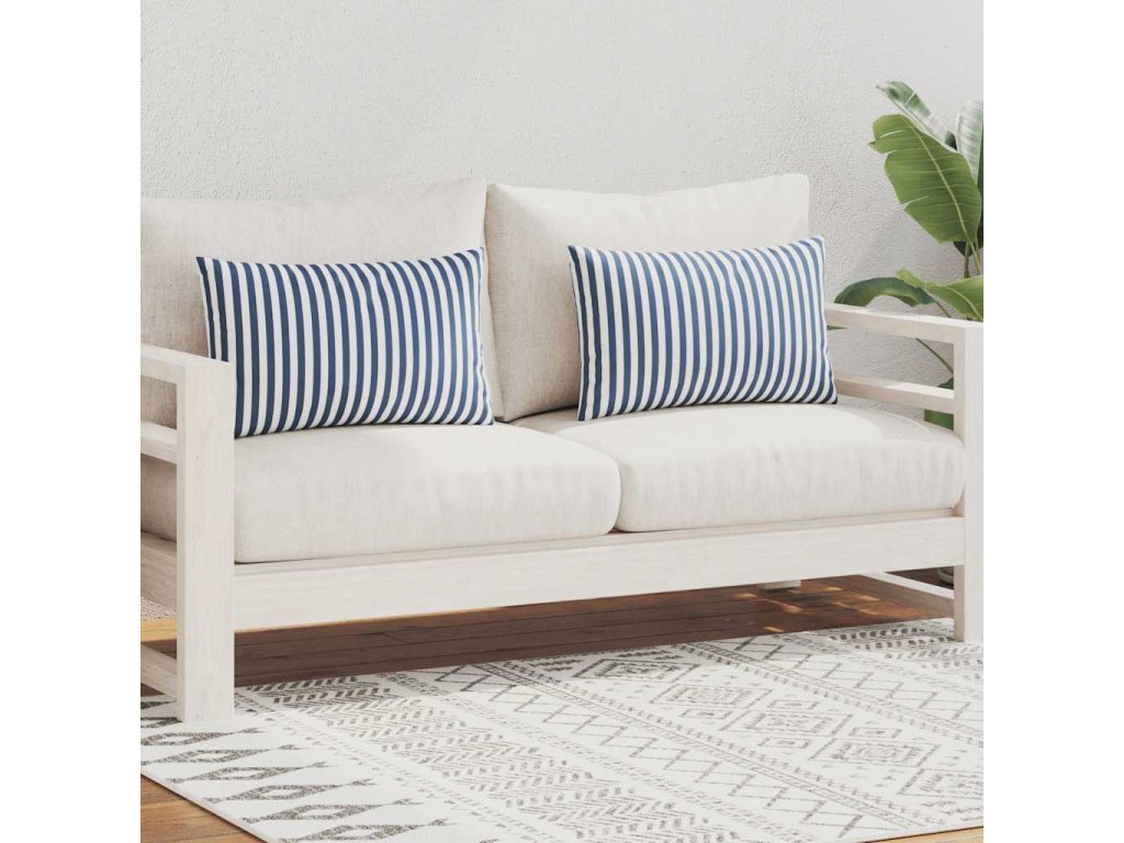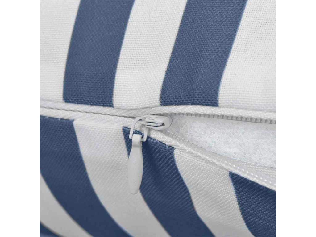 Tieto mäkké a pohodlné vankúše s krásnou pásikovou potlačou sú vyrobené z textílie, ktorá je vodeodolná a odolná voči UV žiareniu, vďaka čomu sú trvácne a vhodné pre vonkajšie použitie. Vďaka zipsovému uzatváraniu sa obliečka jednoducho navlieka a čistí.