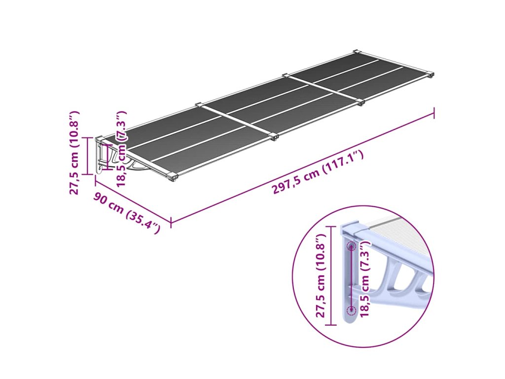 Táto krásna vchodová strieška predstavuje jednoduché riešenie na ochranu vašich dverí pred dažďom, snehom, krupobitím alebo inými nepriaznivými poveternostnými podmienkami.