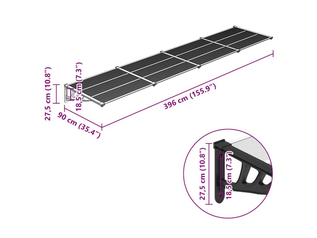 - Celkové rozmery: 396 x 90 x 27,5 cm (D x Š x V)