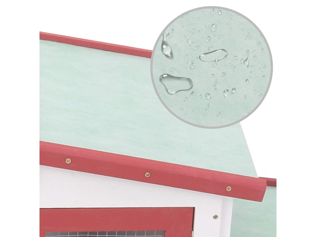 Králikáreň je vyrobená z jedľového masívu s náterom, ktorý je pre zvieratá bezpečný a zaručuje dlhú životnosť. Asfaltová strieška ochráni vašich chlpatých kamarátov pred nepriaznivým počasím, Vyvýšené okraje sa postarajú o to, aby boli vaše malé zvieratá v bezpečí, suchu a teple, a to najmä počas upršaných dní. Zviera môže jednoducho prejsť na vyššie poschodie po praktických rampách na obidvoch stranách. Králikáreň je navrhnutá tak, aby si nevyžadovala náročnú údržbu, a preto je vybavená odnímateľným dnom pre jednoduché čistenie. Vonkajší výbeh s trvácnym oplotením poskytuje dostatočné prúdenie vzduchu a postará sa o to, aby sa zvieratá nedostali von a aby boli chránené pred dravcami. Uzamykacie dvierka chránia vašich domácich miláčikov a umožňujú jednoduchý prístup.