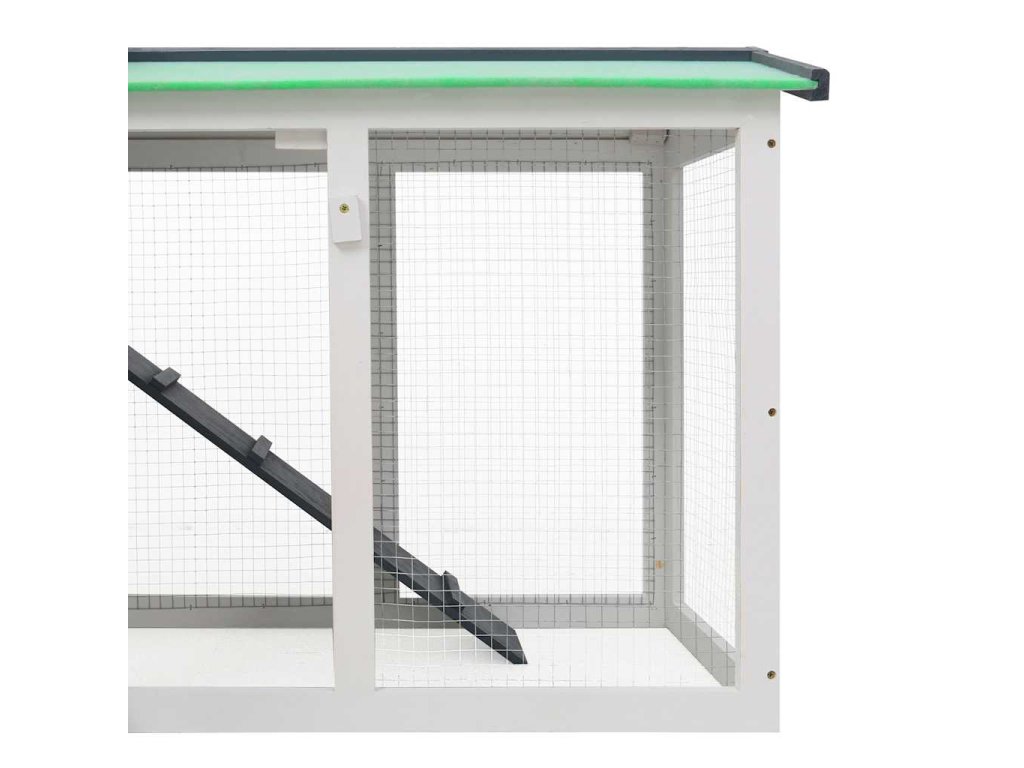 Králikáreň je vyrobená z jedľového masívu s náterom, ktorý je pre zvieratá bezpečný a zaručuje dlhú životnosť. Asfaltová strieška ochráni vašich chlpatých kamarátov pred nepriaznivým počasím, Vyvýšené okraje sa postarajú o to, aby boli vaše malé zvieratá v bezpečí, suchu a teple, a to najmä počas upršaných dní. Zviera môže jednoducho prejsť na vyššie poschodie po praktickej rampe. Králikáreň je navrhnutá tak, aby si nevyžadovala náročnú údržbu, a preto je vybavená odnímateľným dnom pre jednoduché čistenie. Vonkajší výbeh s trvácnym oplotením poskytuje dostatočné prúdenie vzduchu a postará sa o to, aby sa zvieratá nedostali von a aby boli chránené pred dravcami. Uzamykacie dvierka chránia vašich domácich miláčikov a umožňujú jednoduchý prístup.