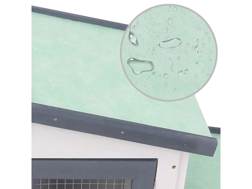 Králikáreň je vyrobená z jedľového masívu s náterom, ktorý je pre zvieratá bezpečný a zaručuje dlhú životnosť. Asfaltová strieška ochráni vašich chlpatých kamarátov pred nepriaznivým počasím, Vyvýšené okraje sa postarajú o to, aby boli vaše malé zvieratá v bezpečí, suchu a teple, a to najmä počas upršaných dní. Zviera môže jednoducho prejsť na vyššie poschodie po praktických rampách na obidvoch stranách. Králikáreň je navrhnutá tak, aby si nevyžadovala náročnú údržbu, a preto je vybavená odnímateľným dnom pre jednoduché čistenie. Vonkajší výbeh s trvácnym oplotením poskytuje dostatočné prúdenie vzduchu a postará sa o to, aby sa zvieratá nedostali von a aby boli chránené pred dravcami. Uzamykacie dvierka chránia vašich domácich miláčikov a umožňujú jednoduchý prístup.