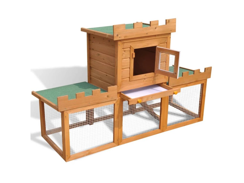 Táto kvalitná dvojposchodová králikáreň poskytuje priestranný a útulný prístrešok pre malé zvieratá, najmä roztomilé králiky. Má naozaj všetranné použitie, pretože predstavuje vhodné miesto na hru a výcvik, no zároveň v nej budú vaše zvieratá v bezpečí.