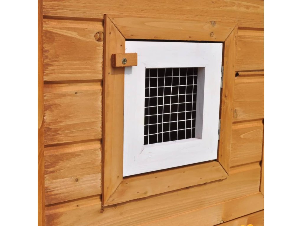 Králikáreň má rám z vysokokvalitného borovicového dreva, vďaka čomu vám vydrží dlhé roky. Pohodlný koterec poskytne vaším zvieratám príjemné miesto na spanie. Z prízemia vedie rebrík, po ktorom sa dá ľahko vyliezť na poschodie. Vďaka vyťahovaciemu dnu sa klietka dá navyše bez problémov vyčistiť.