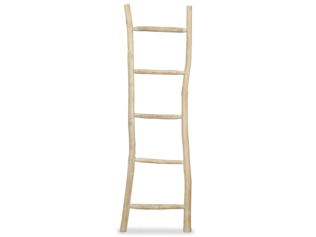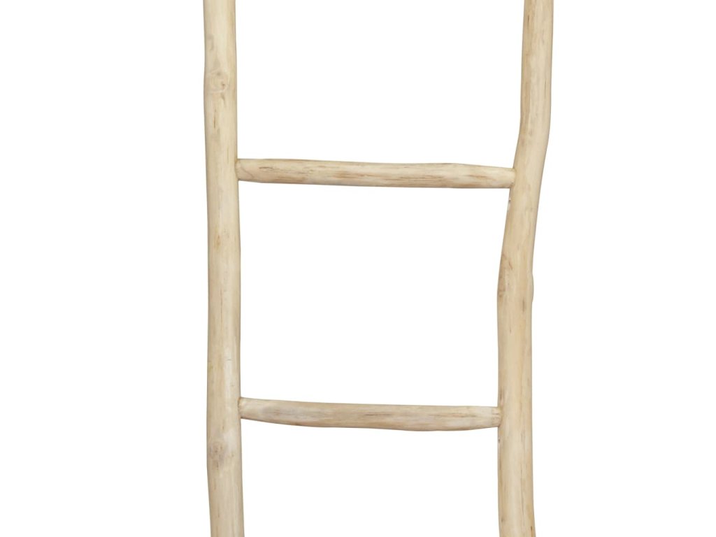 Rebrík na uteráky bol vyrobený z teakového dreva vysokej kvality, a preto je veľmi odolný a vydrží dlhé roky. Je aj dostatočne pevný na to, aby bol funkčne používaný pre bežné domáce práce. Rebrík je voľne stojaci a nepripevňuje sa, takže ho môžete jednoducho oprieť o stenu a na priečky zavesiť čisté alebo použité uteráky, ktoré chcete mať na dosah alebo usušiť.