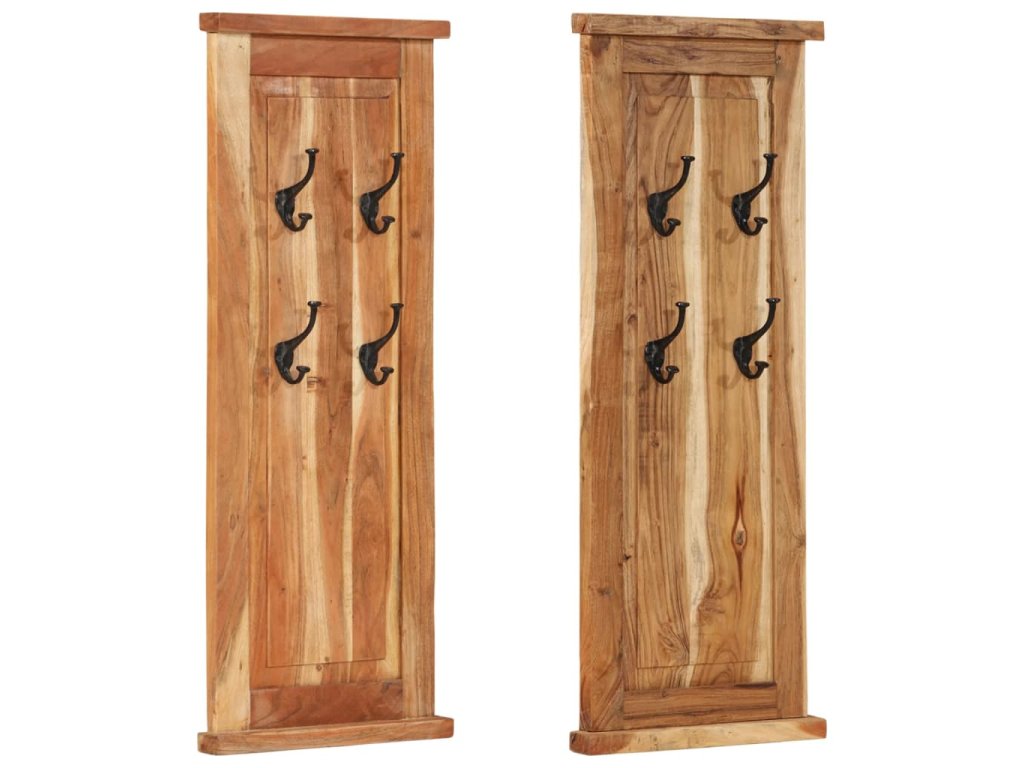 Každý vešiak má 4 háčiky z kovaného železa, ktoré sú skutočne pevné a trvácne. Tieto nadčasové nástenné vešiaky v retro štýle vám poskytnú ideálne miesto na odkladanie kabátov, šálov a čiapok. Vešiaky sú vyrobené z masívneho akáciového dreva a sú veľmi pevné a odolné. Akáciové drevo je tvrdé tvrdé drevo s krásnou štruktúrou, ktorá vydrží dlhé roky. Každý krok procesu výroby je vykonávaný s tou najväčšou starostlivosťou, vrátane leštenia, natierania a lakovania. Vďaka vynikajúcemu remeselnému opracovaniu a krásnej textúre dreva je každý kus nábytku výnimočný a trochu odlišný od ostatných kusov.