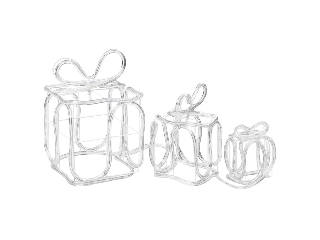 Dodajte vášmu domovu počas týchto sviatkov šmrnc s našou sadou 3 ozdôb v tvare darčekových krabičiek. Táto vianočná ozdoba je vodeodolná so stupňom krytia IP44.