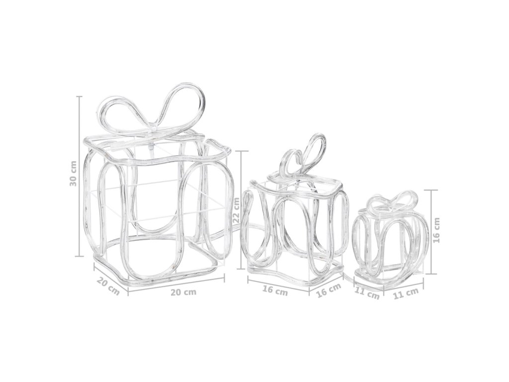 Tieto 3D darčekové krabičky majú LED diódy s teplým bielym svetlom, ktoré jemne osvetlia priestory, čo vytvorí dokonalú atmosféru v interiéri aj exteriéri.
