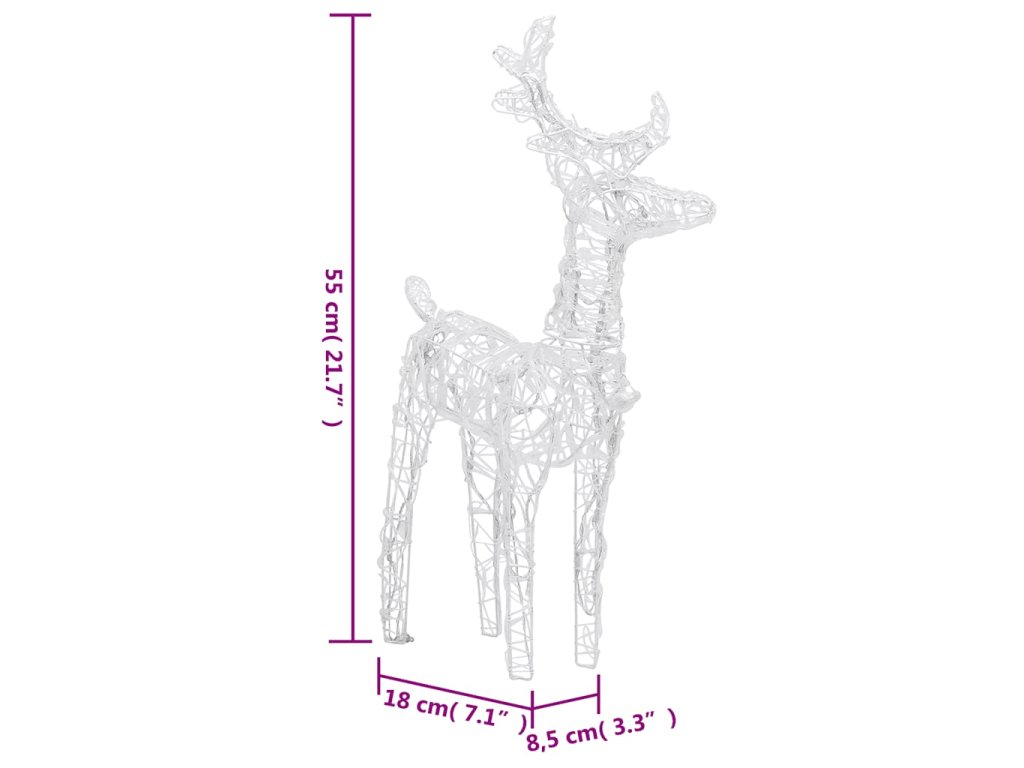 Tento osvetlený sob je vyrobený z akrylu a PVC, ktoré sa nachádzajú okolo oceľového rámu. Počas sviatkov bude teda dokonale odolný voči poveternostným vplyvom. Je vybavený 160 LED svetlami, ktoré sú energeticky účinné a majú dlhú životnosť. Je navrhnutý s 8 rôznymi svetelnými efektmi: kombinácia všetkých efektov, pomalé rozsvietenie, blikanie, vlny, naháňanie/tečúca voda, sekvenčné, trvalé a pomalé stmievanie. Rozsvieťte túto ozdobu a vytvorte magickú sviatočnú atmosféru.