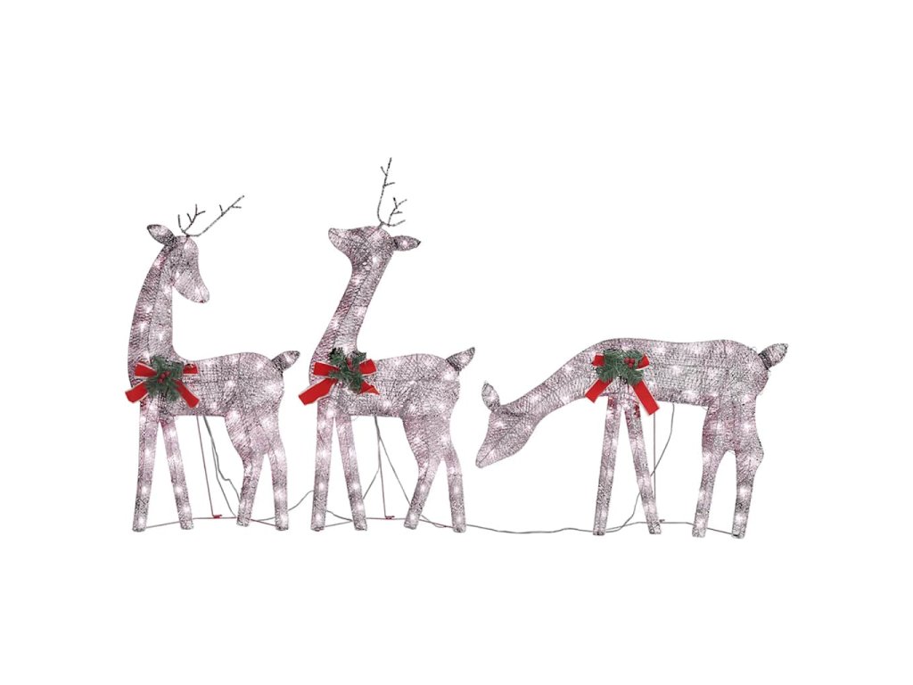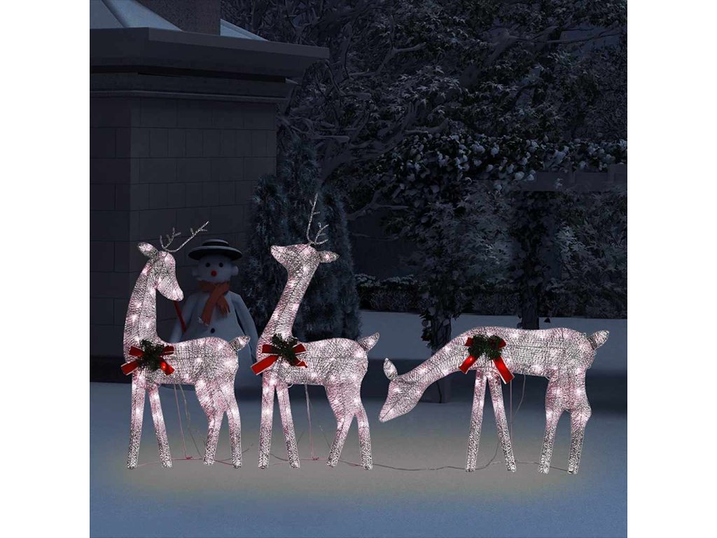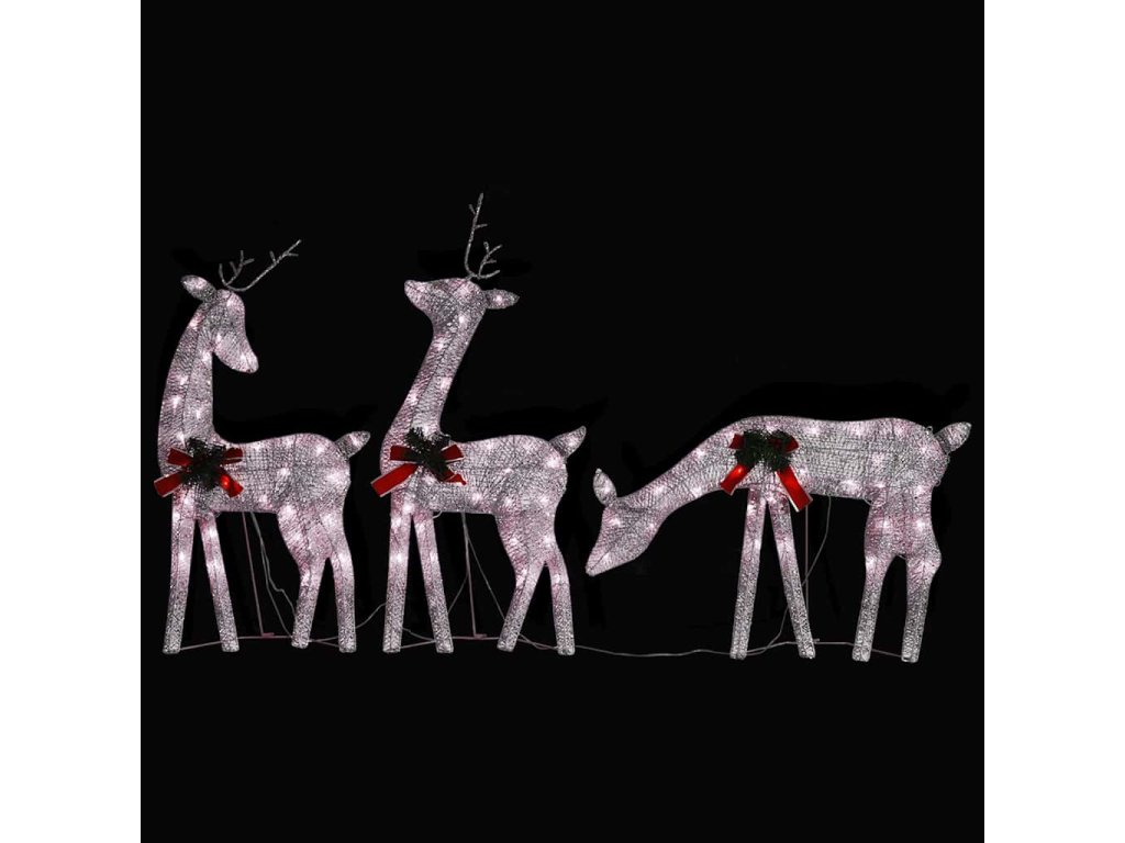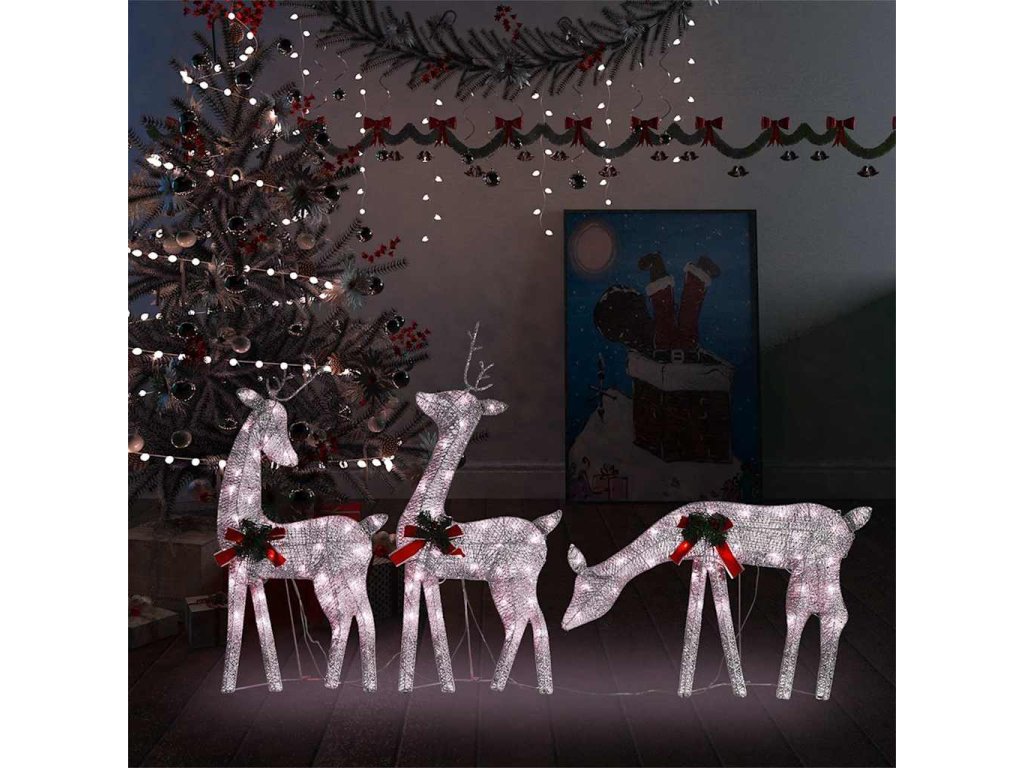 Táto osvetlená sobia rodina je vyrobená z pevnej textílie a ocele, a je veľmi odolná. Žiariaca rodinka je vybavená 90 LED svetlami, ktoré sú energeticky účinné a majú dlhú životnosť. Vďaka sieťkovému dizajnu vytvára táto dekorácia pri osvetlení nádherný efekt. Je navrhnutá s 8 rôznymi svetelnými efektmi: kombinácia všetkých efektov, pomalé rozsvietenie, blikanie, vlny, naháňanie/tečúca voda, sekvenčné, trvalé a pomalé stmievanie. Rozsvieťte túto ozdobu a vytvorte magickú sviatočnú atmosféru.