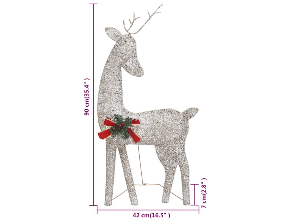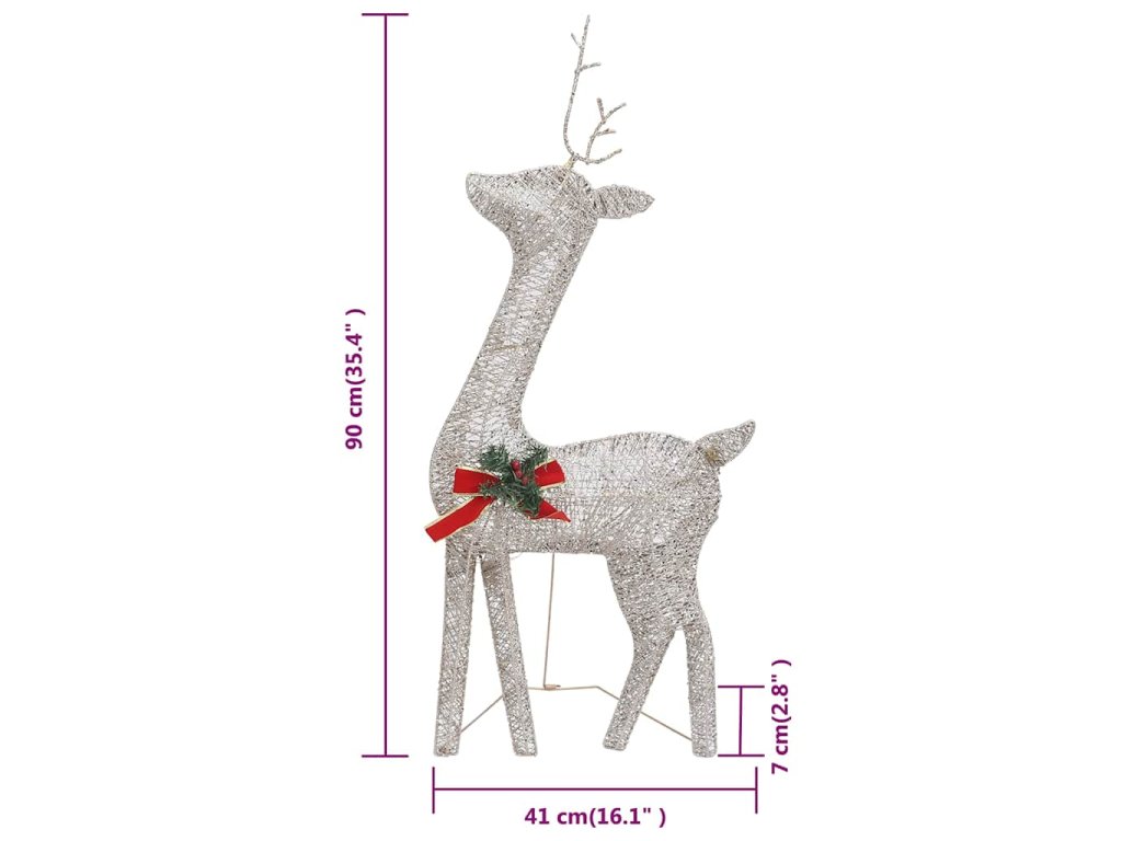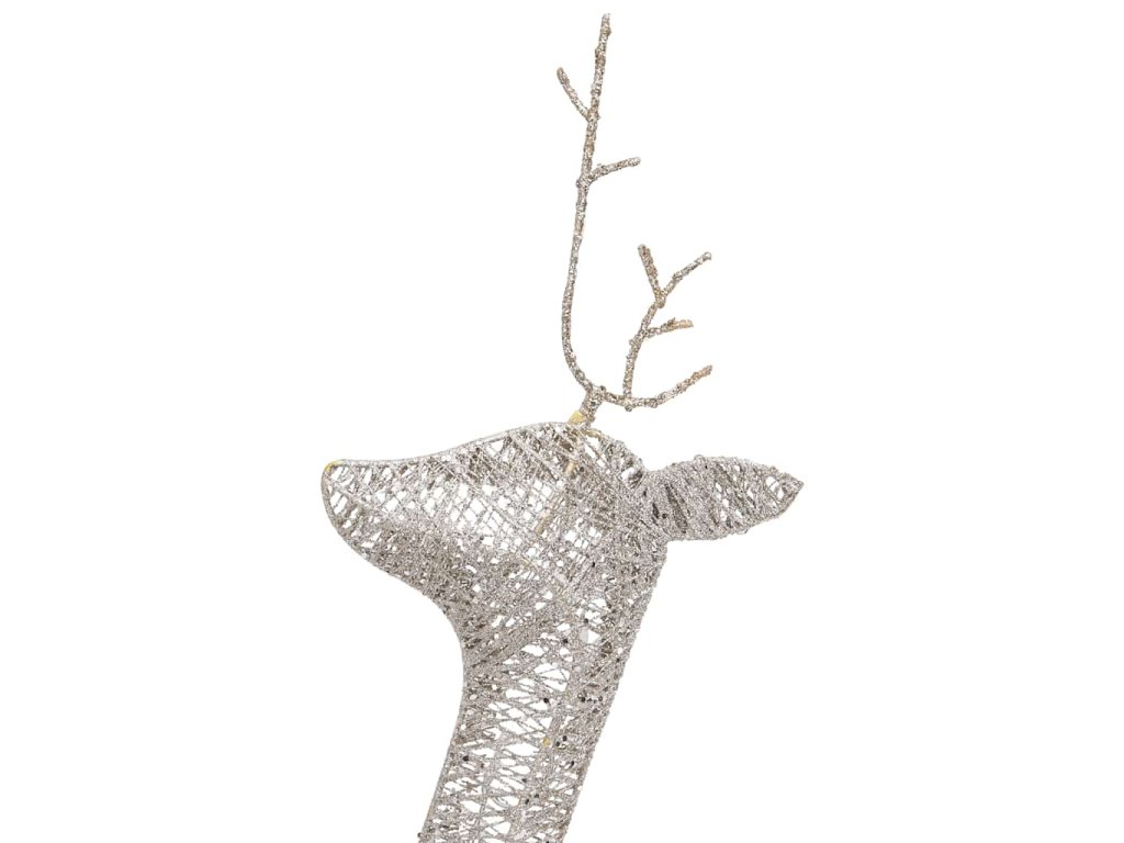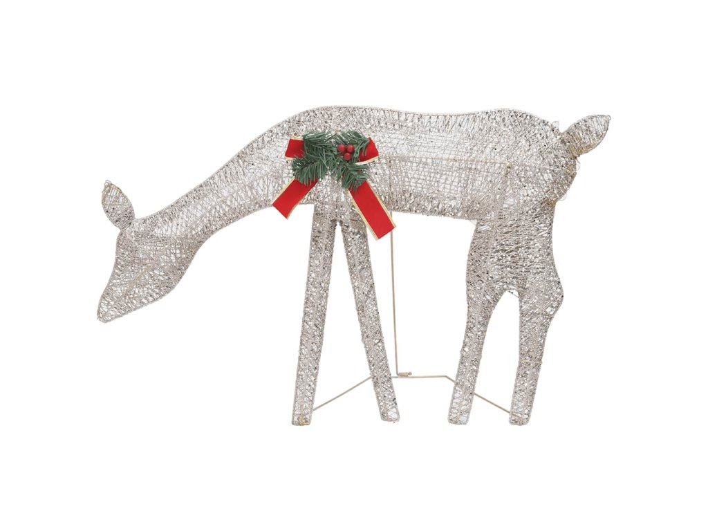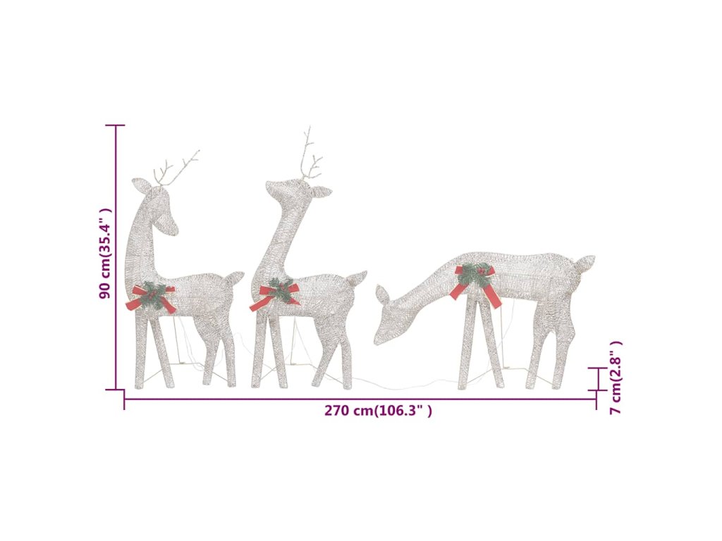 Táto osvetlená sobia rodina je vyrobená z pevnej textílie a ocele, a je veľmi odolná. Žiariaca rodinka je vybavená 90 LED svetlami, ktoré sú energeticky účinné a majú dlhú životnosť. Vďaka sieťkovému dizajnu vytvára táto dekorácia pri osvetlení nádherný efekt. Je navrhnutá s 8 rôznymi svetelnými efektmi: kombinácia všetkých efektov, pomalé rozsvietenie, blikanie, vlny, naháňanie/tečúca voda, sekvenčné, trvalé a pomalé stmievanie. Rozsvieťte túto ozdobu a vytvorte magickú sviatočnú atmosféru.