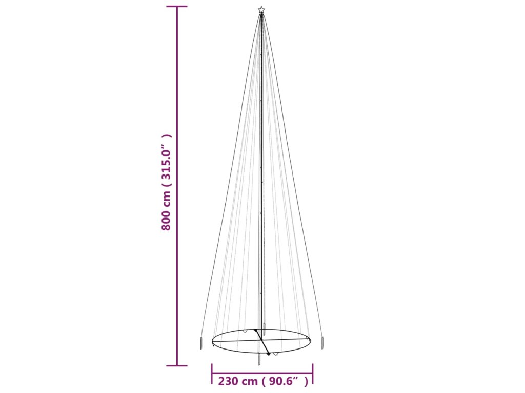 - Stromček s LED: Tento LED vianočný stromček s výškou 800 cm a priemerom 230 cm je špeciálne navrhnutý s 1134 farebnými energeticky účinnými LED diódami v priamom tvare.