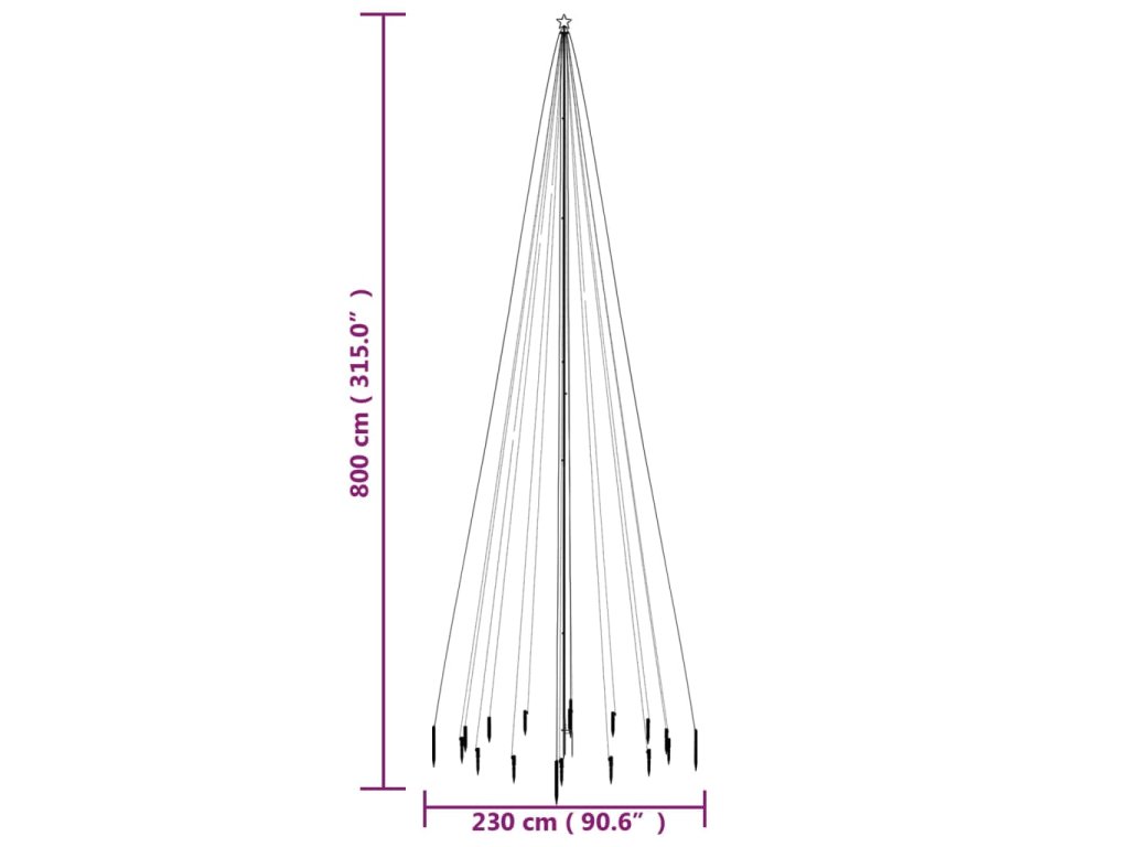 - Stromček s LED: Tento LED vianočný stromček s výškou 800 cm a priemerom 230 cm je špeciálne navrhnutý s 1134 farebnými energeticky účinnými LED diódami v priamom tvare.