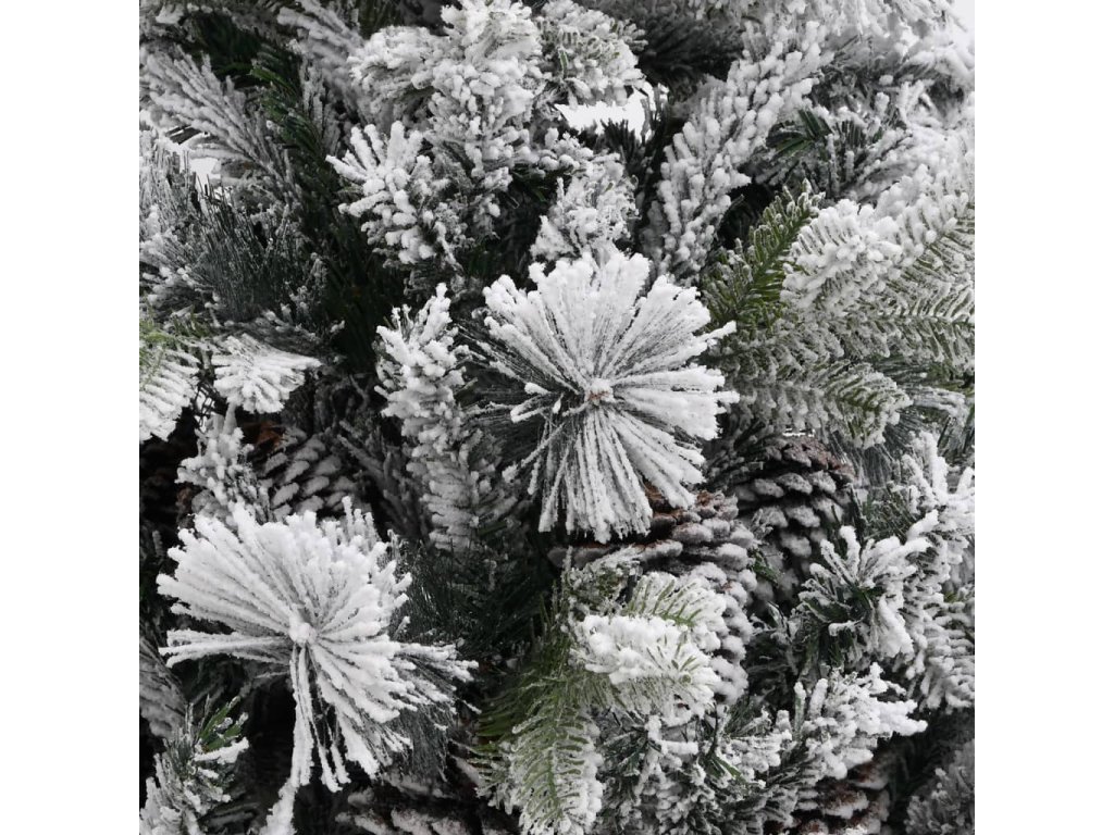 Tento krásny vianočný stromček má vetvičky vyrobené z PVC a PE. Vetvičky stromčeka sú pripevnené na stredovej tyči pomocou kĺbového systému. Vďaka závesom sa vetvy automaticky presunú do správnej polohy. Okrem toho šišky a biely sneh na ihličí dodávajú tomuto vianočnému stromčeku elegantný nádych. Oceľový stojan, ktorý je súčasťou balenia, poskytuje stromčeku optimálnu stabilitu.