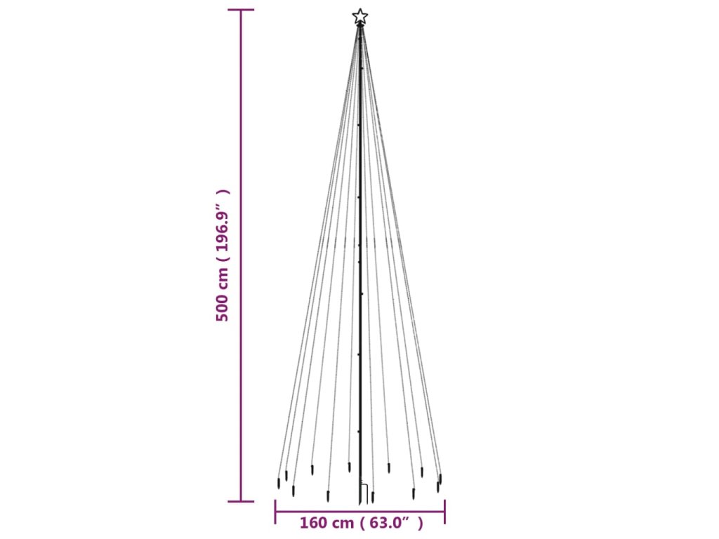 - Stromček s LED: Tento LED vianočný stromček s výškou 500 cm a priemerom 160 cm je špeciálne navrhnutý so 732 teplými bielymi energeticky účinnými LED diódami v priamom tvare.