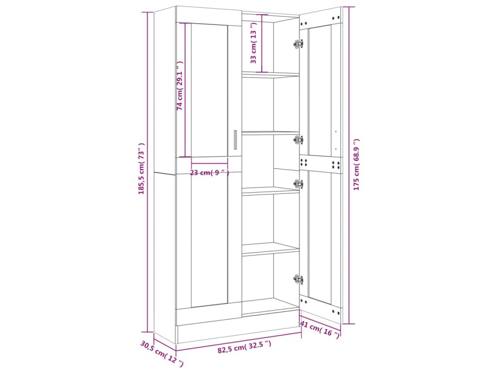 - Rozmery: 82,5 x 30,5 x 185,5 cm (Š x H x V)