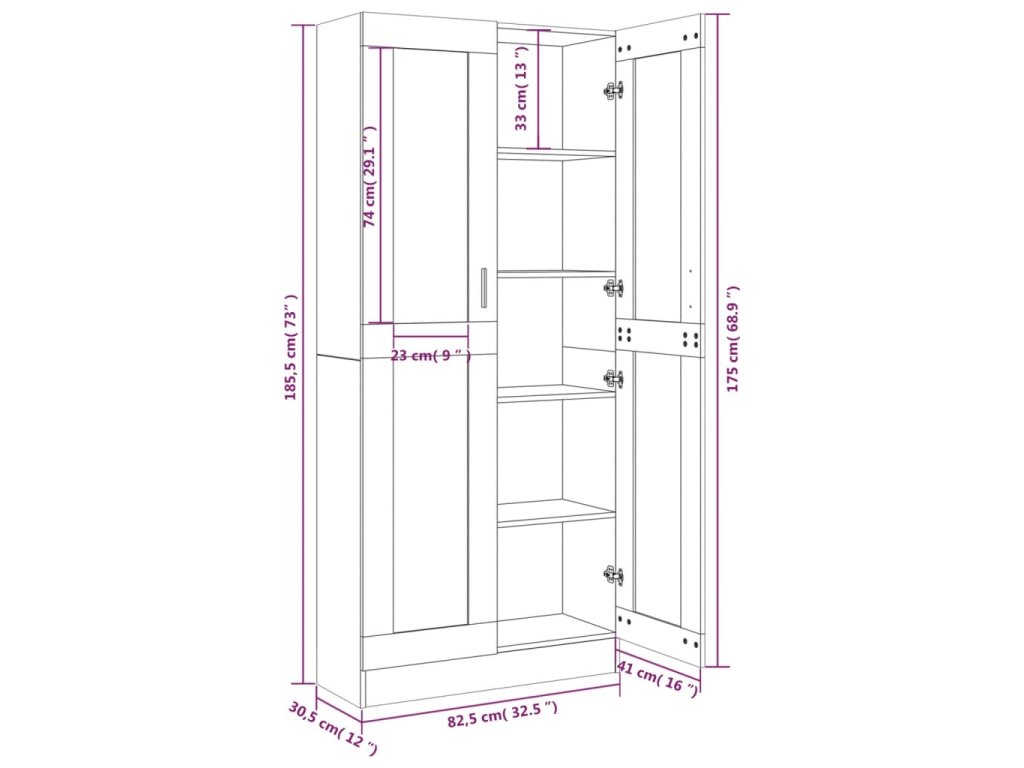 - Rozmery: 82,5 x 30,5 x 185,5 cm (Š x H x V)