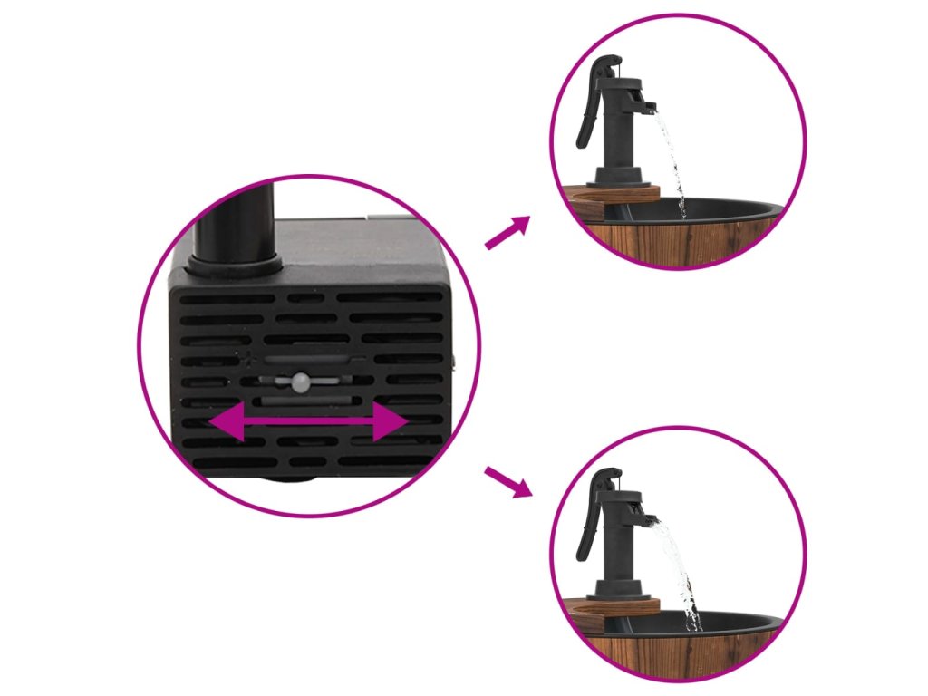 - Pevný a stabilný rám: Drevený rám záhradnej fontány zaručuje pevnosť a stabilitu.