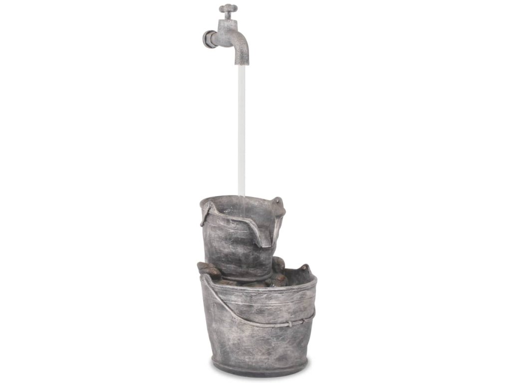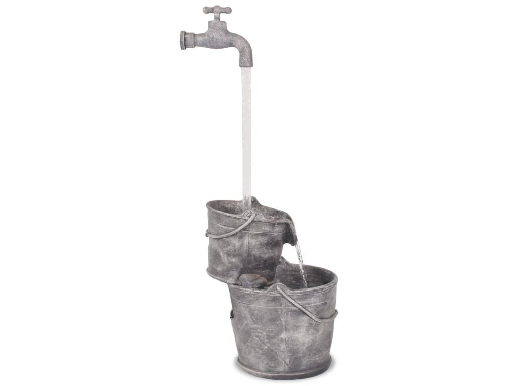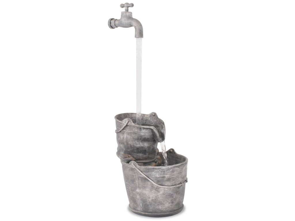 Tento jedinečný samostatný vodný doplnok má výrazný dizajn, ktorý vyzerá ako pustený kohútik plniaci dve vedrá. Vodná fontána má prevedenie v antickom štýle. Bude skvelým dekoratívnym doplnkom do vášho vnútorného alebo vonkajšieho priestoru!