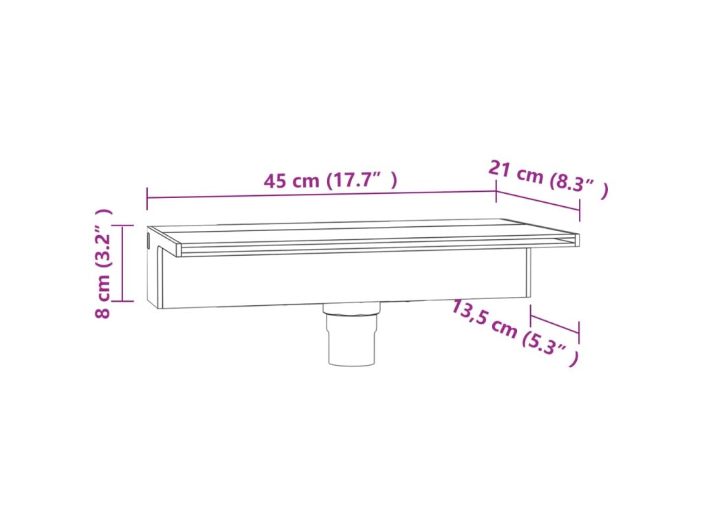- Rozmery vodnej plošiny: 45 x 13,5 cm (D x Š)