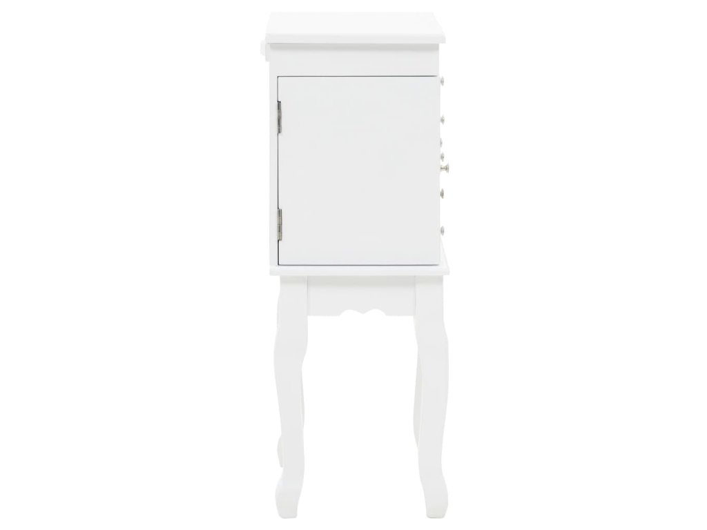 Táto vynikajúca šperkovnica je vyrobená z drevovláknitej dosky strednej hustoty (MDF) a jej štyri nohy sú vyrobené z borovicového dreva, vďaka čomu je pevná a odolná. Skrinka sa ľahko čistí a udržiava.