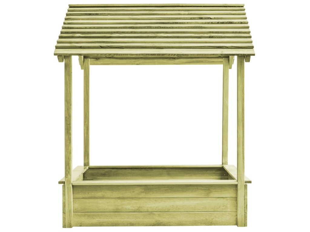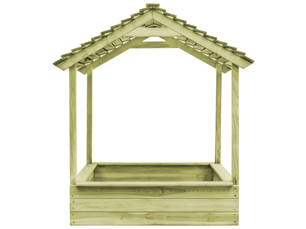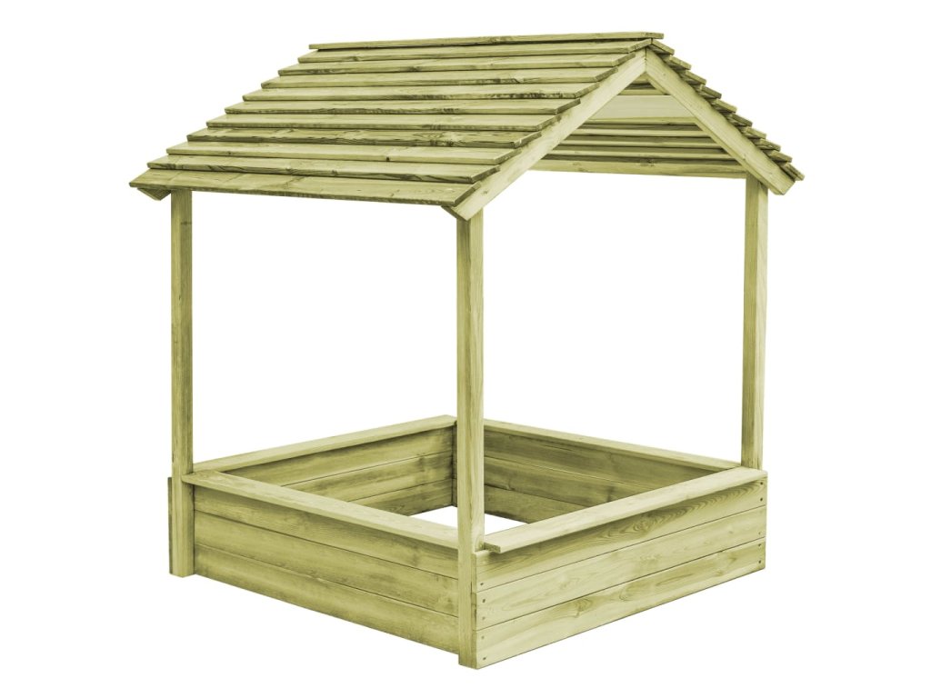 Záhradný domček je vyrobený z impregnovaného borovicového dreva, takže je stabilný, trvácny a mimoriadne pevný. Impregnovaný borovicový masív je odolný voči hnilobe, hmyzu a nepriaznivým poveternostným podmienkam. Záhradný domček na hranie má zabudované pieskovisko. Deti si môžu do záhradného domčeka priniesť hračky a iné drobnosti a vychutnávať si príjemné chvíle strávené vonku!
