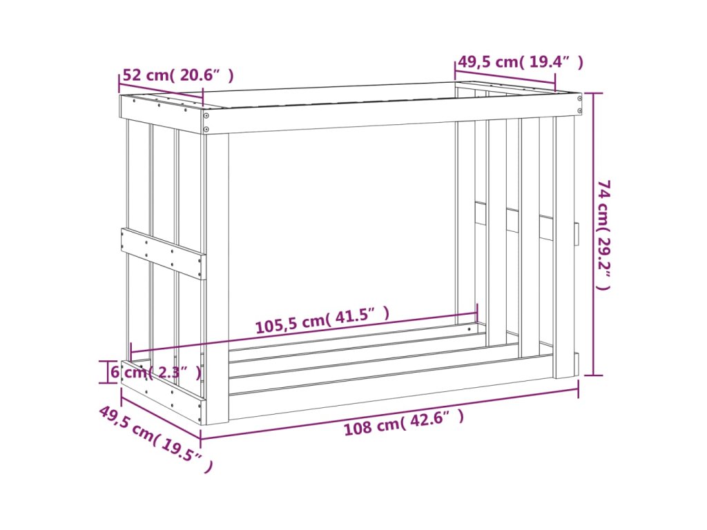 - Veľký úložný priestor: Stojan na palivové drevo má tiež veľký úložný priestor na úhľadné uloženie dreva.