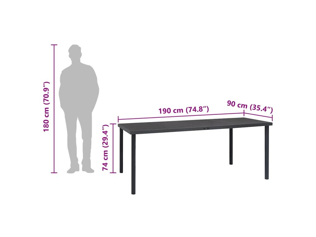 - Rozmery stola: 190 x 90 x 74 cm (D x Š x V)