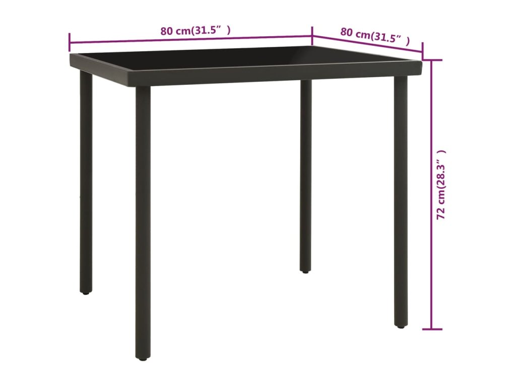 - Rozmery stola: 80 x 80 x 72 cm (D x Š x V)