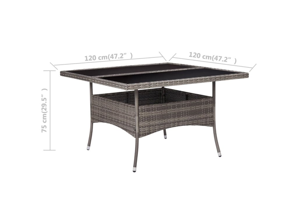 Vychutnajte si večeru pod hviezdami alebo slnečný obed na terase s naším jedálenským stolom. Môžete za neho usadiť až 4 osoby. Tento stôl má oceľový rám s práškovým povrchom pokrytý vodeodolným PE ratanom s UV ochranou, čo zaistí roky používania vo vonkajšom priestore. Doska stola je vyrobená zo spevneného tvrdeného skla pre oporu a navyše sa ľahko udržuje a čistí. Ľahká ratanová konštrukcia navyše uľahčuje presúvanie stola.