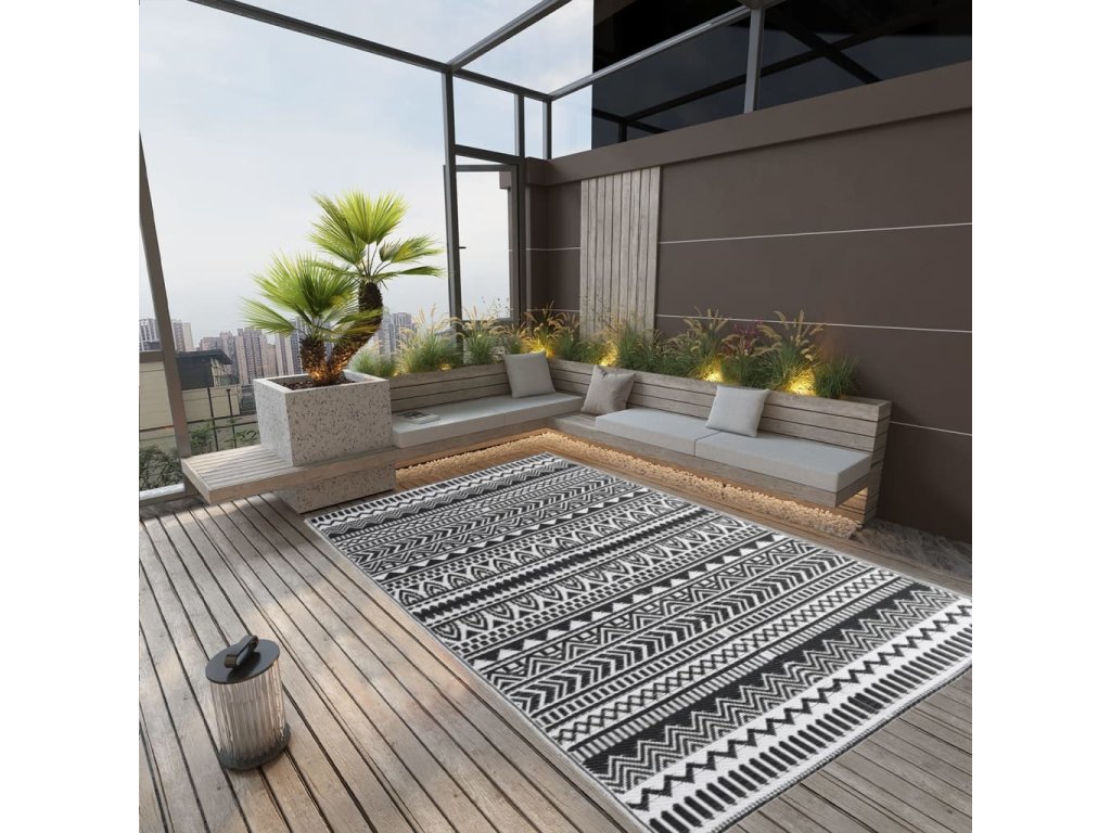 Tento trendový vonkajší koberec bude skvelým dekoratívnym doplnkom vášho vonkajšieho obytného priestoru! Umiestnite ho do priestoru s posedením na svojom balkóne, terase alebo verande a okamžite sa budete cítiť útulnejšie.