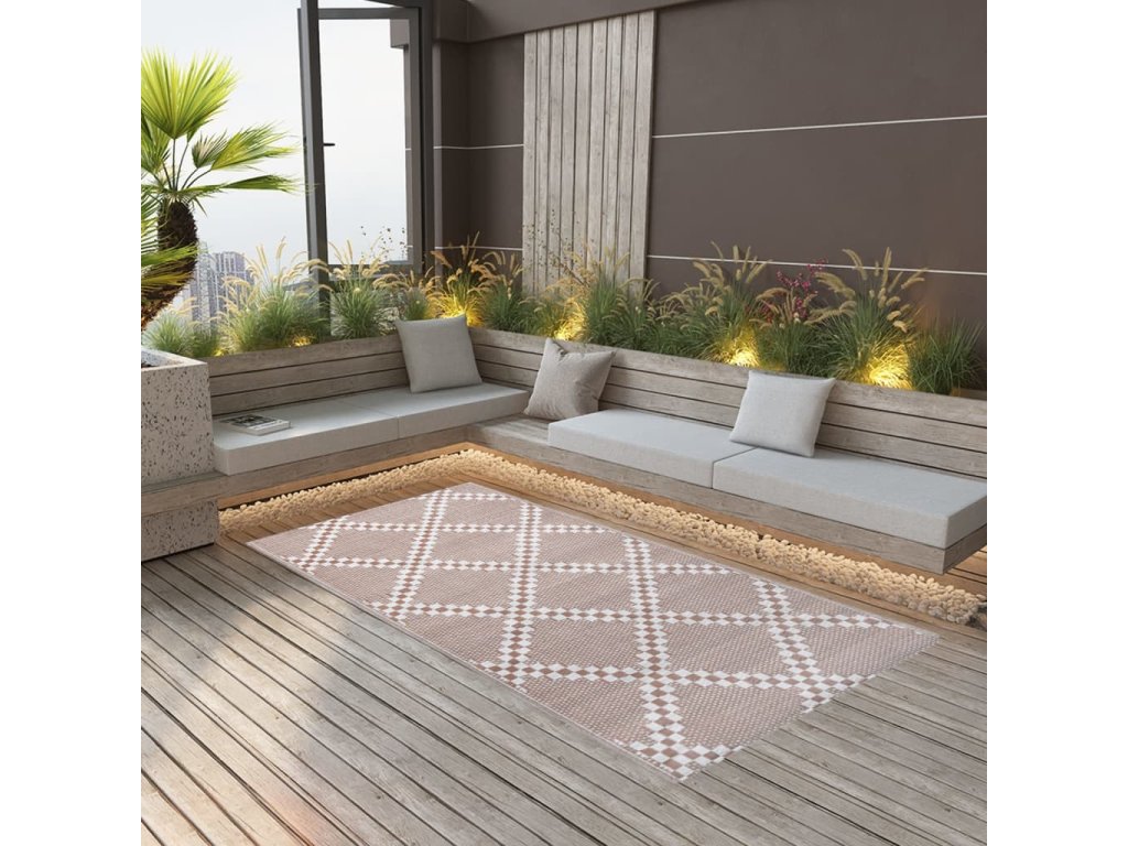 Tento trendový vonkajší koberec bude skvelým dekoratívnym doplnkom vášho vonkajšieho obytného priestoru! Umiestnite ho do priestoru s posedením na svojom balkóne, terase alebo verande a okamžite sa budete cítiť útulnejšie.