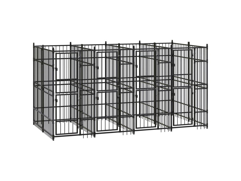 Tento koterec pre psov poskytne dostatok priestoru na pohyb. Steny z oceľových tyčí pomáhajú predchádzať nechcenému správaniu a nečakaným nehodám a zároveň umožňujú vetranie. Vďaka robustnej oceľovej konštrukcii s práškovým nástrekom je táto klietka pre psov odolná a stavaná na dlhú životnosť. Dvierka s pántmi so systémom uzamykateľných západiek zaisťujú dodatočnú bezpečnosť a ochranu vašich psov.