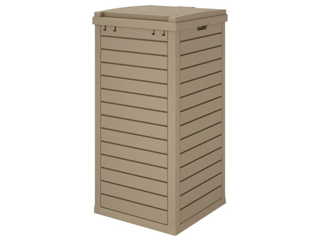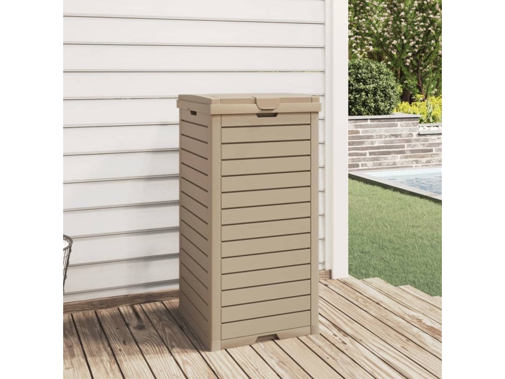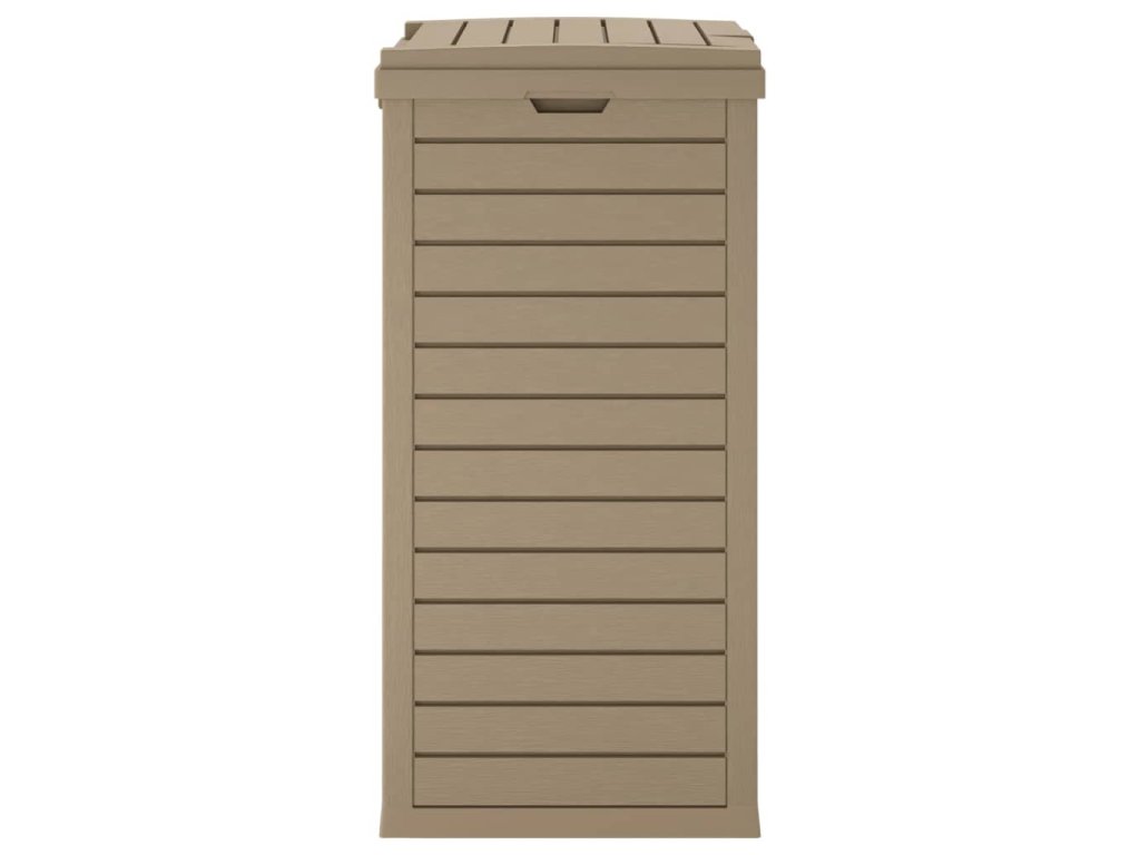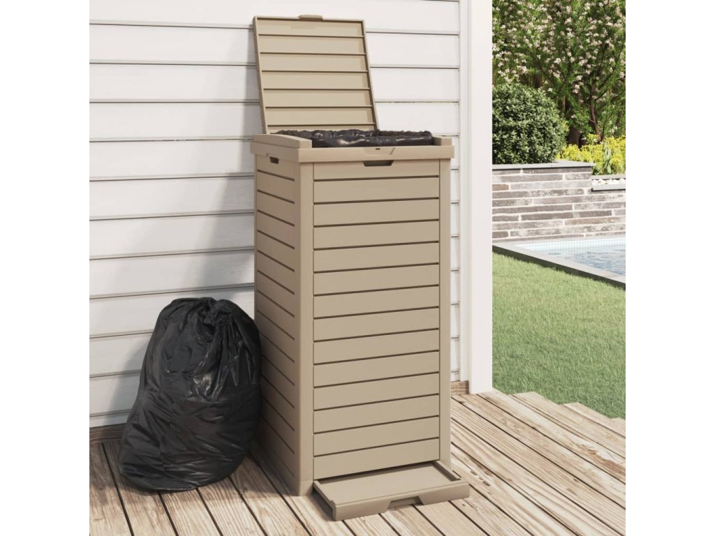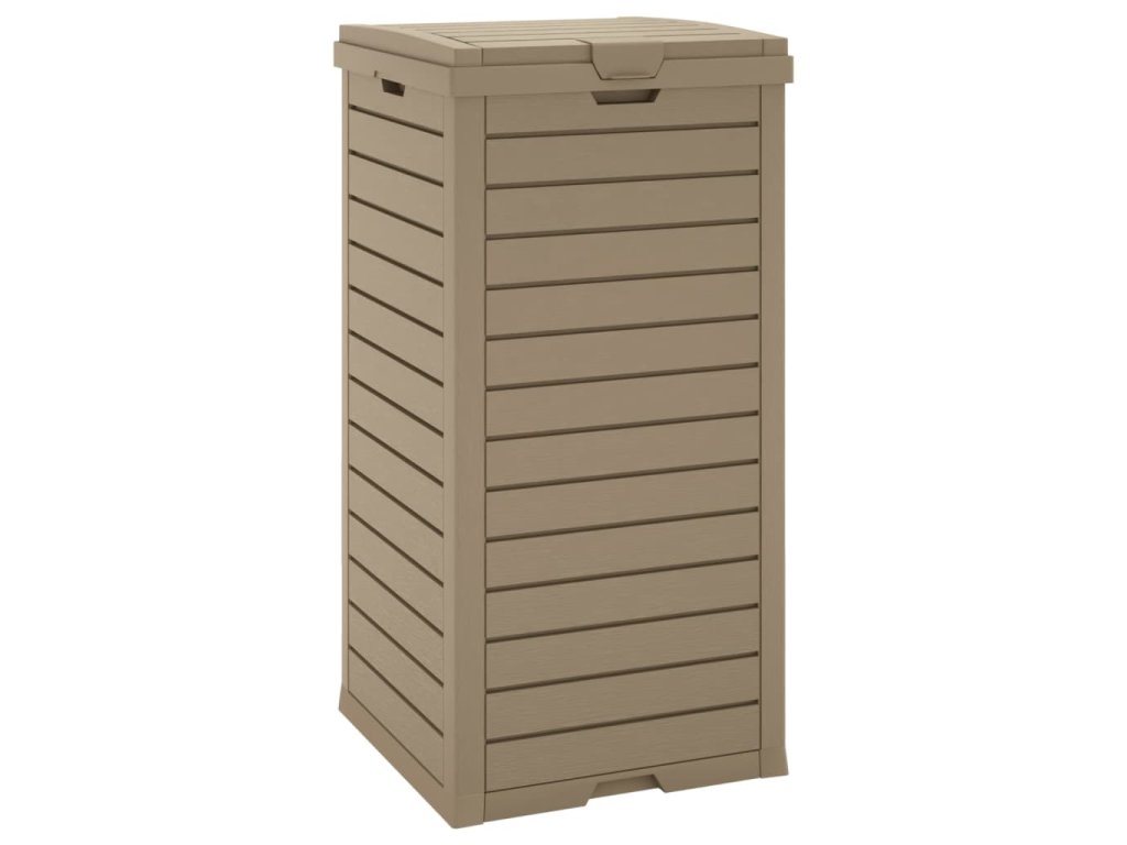 - Dizajn s imitáciou textúry dreva: Nádoba na odpad má dizajn s imitáciou textúry dreva, ktorý dodá vášmu vonkajšiemu obytnému priestoru nádych prirodzeného šarmu.