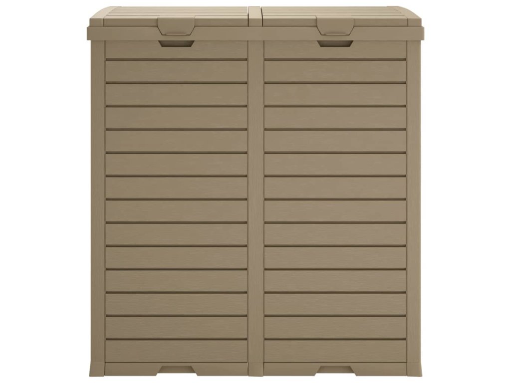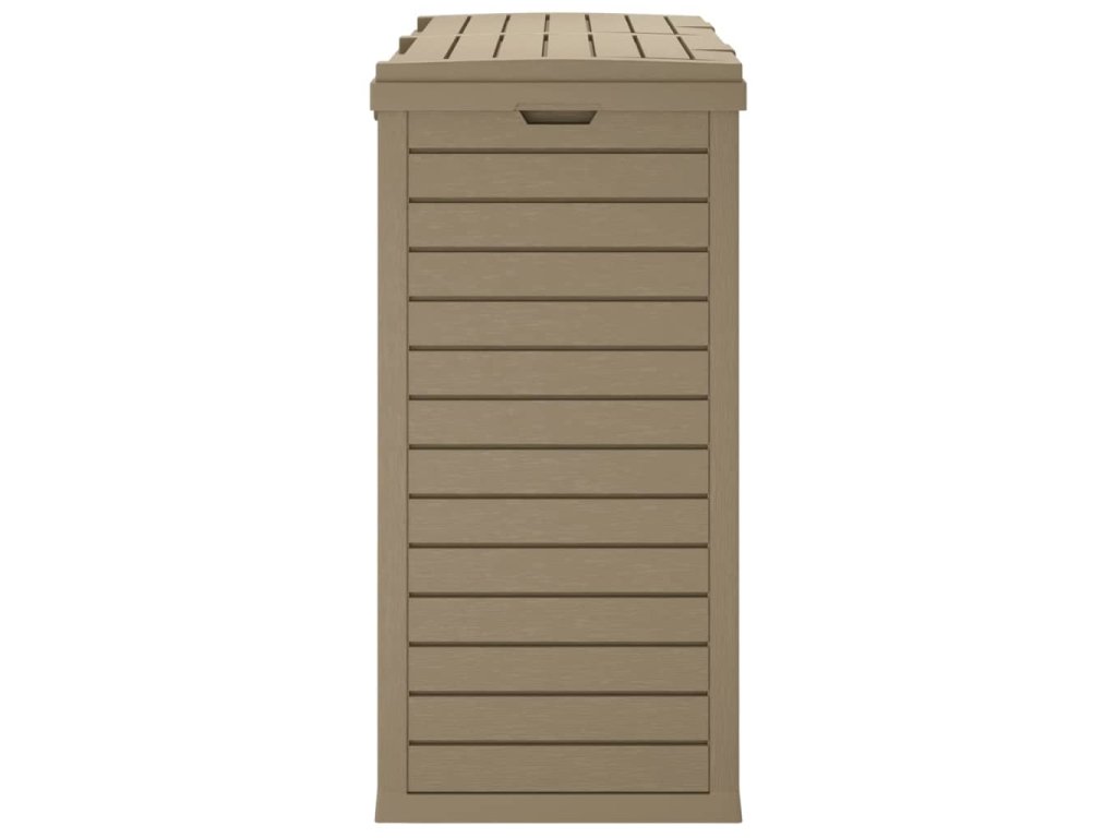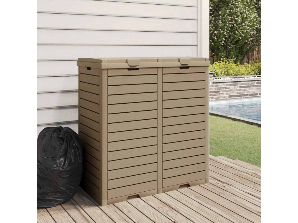 - Dizajn s imitáciou textúry dreva: Nádoba na odpad má dizajn s imitáciou textúry dreva, ktorý dodá vášmu vonkajšiemu obytnému priestoru nádych prirodzeného šarmu.