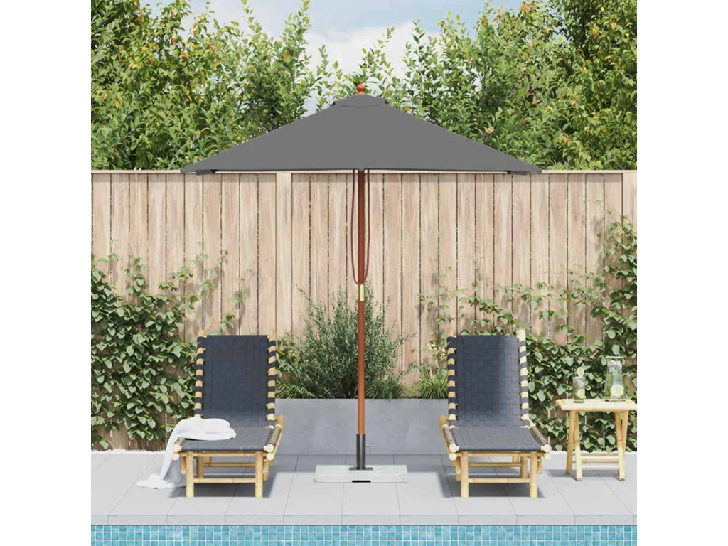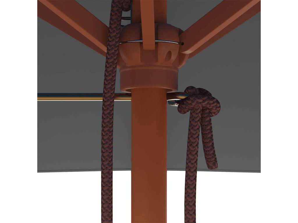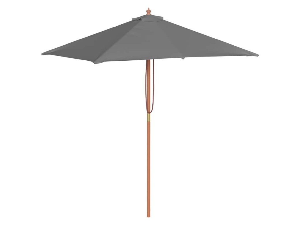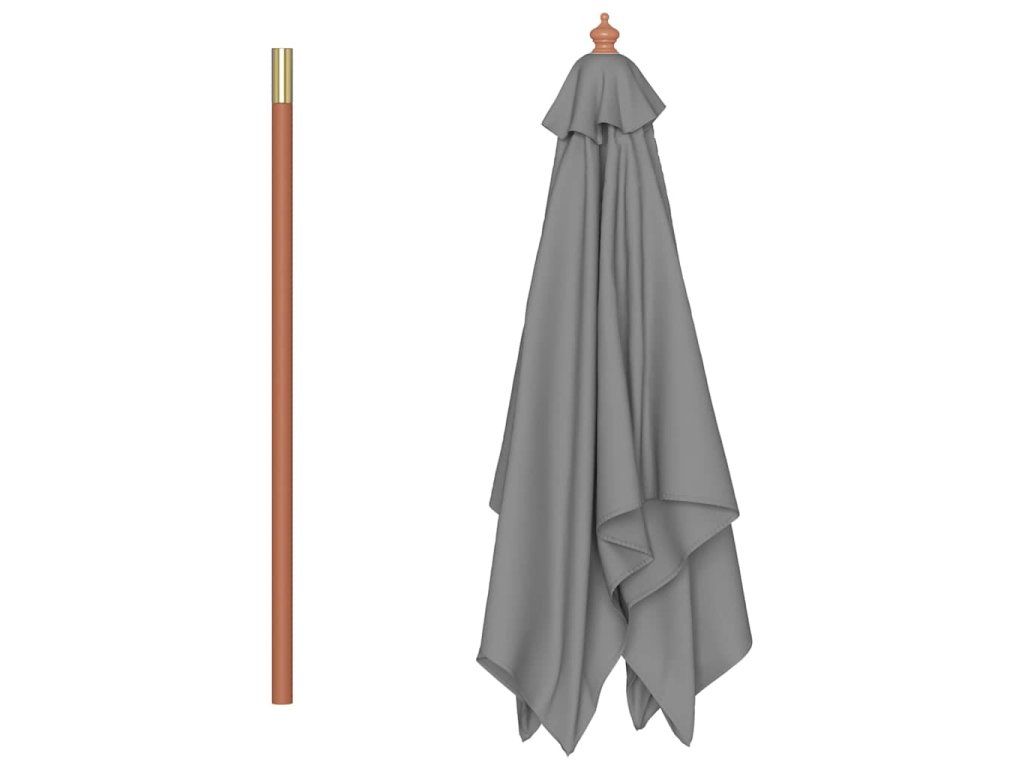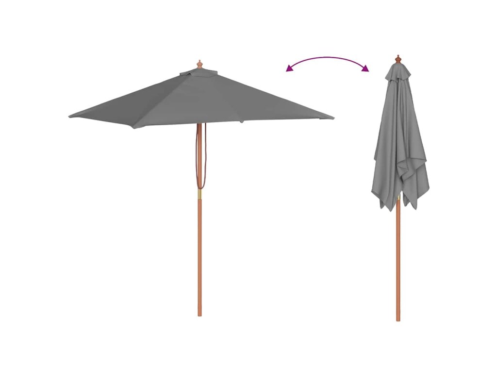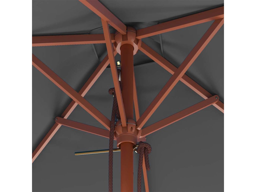 Slnečník je vyrobený z polyesteru, ktorý nevybledne a je odolný voči UV žiareniu, vďaka čomu vám poskytne optimálnu ochranu pred slnkom a ľahko sa čistí. Slnečník má tyč s priemerom 38 mm a dá sa namontovať na váš pôvodný stojan alebo do stredu stola s otvorom na slnečník. Pevná drevená tyč spolu so 6 trvácnymi rebrami zabezpečujú výbornú stabilitu a dlhú životnosť slnečníka. Tento záhradný slnečník sa dá jednoducho otvárať a zatvárať pomocou systému s jednou kladkou. Výrobok sa jednoducho montuje.