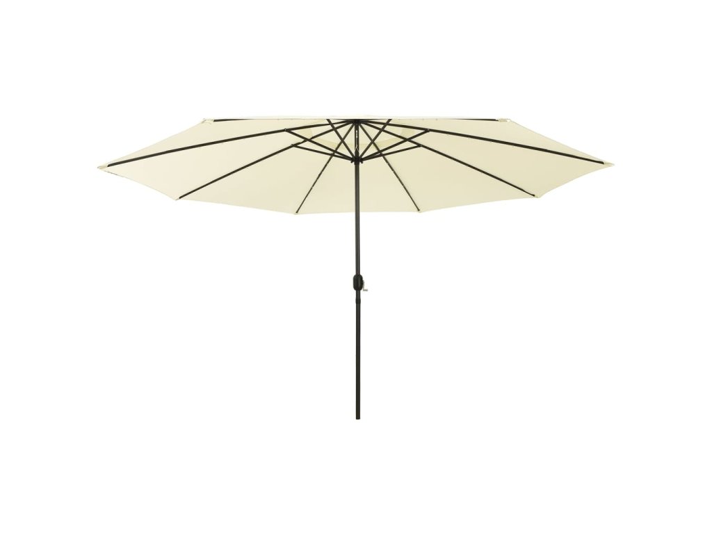 Tento slnečník je vyrobený z polyesteru, ktorý vám poskytuje optimálnu ochranu pred spálením na slnku. Pevná kovová tyč s odolnými rebrami udržuje slnečník stabilný a trvácny. Je vybavený 32 LED diódami, ktoré ho v noci osvetlia a vytvoria útulné a romantické prostredie. Okrem toho sa dá ľahko otvoriť a zavrieť vďaka kľukovému mechanizmu.