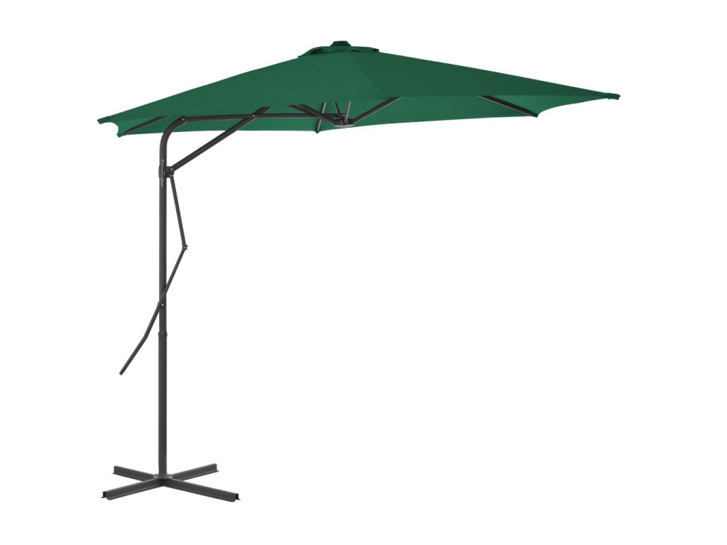 Vrch slnečníka vám poskytne optimálnu ochranu pred slnkom a ľahko sa čistí, pretože je vyrobený z polyesteru odolného voči UV žiareniu a vyblednutiu. Má stabilný oceľový krížový podstavec, ktorý slnečníku dodáva stabilitu. Vďaka pevnej oceľovej tyči a 6 odolným rebrám je slnečník veľmi stabilný a trvácny. Tento jedinečný slnečník sa dá otáčať o 360 stupňov, takže môžete ľahko nastaviť uhol striešky podľa pohybu slnka. Výrobok sa dá jednoducho zostaviť.