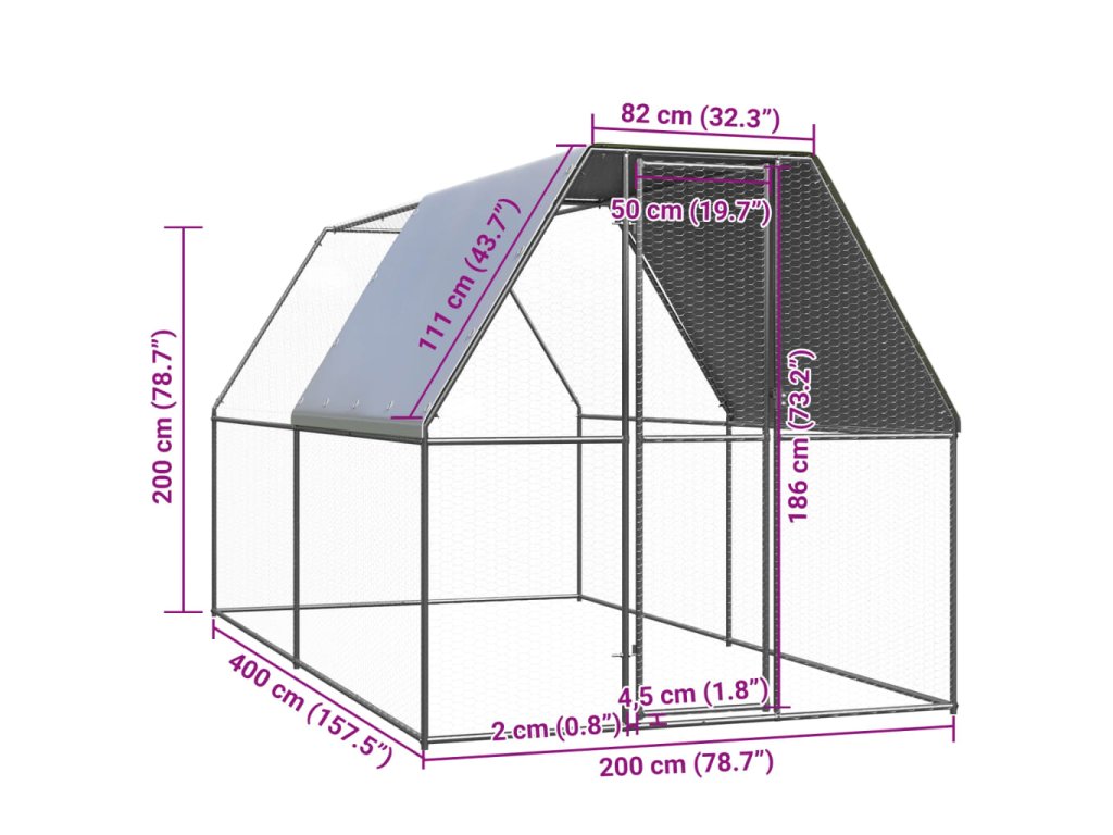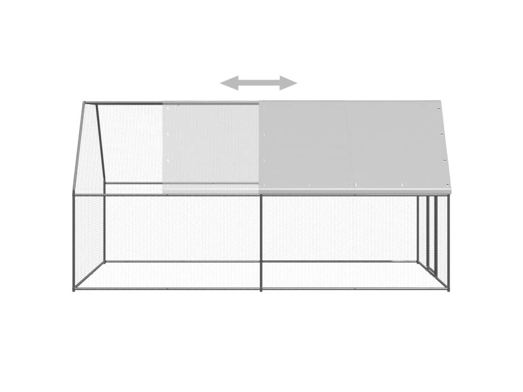 Tento výbeh pre kurčatá je vyrobený z pozinkovanej ocele. Má polyetylénovú strechu, ktorá je odolná voči vode a UV žiareniu. Brána je vybavená zámkom, ktorý zaisťuje mimoriadnu bezpečnosť a ochranu vašich malých zvierat.