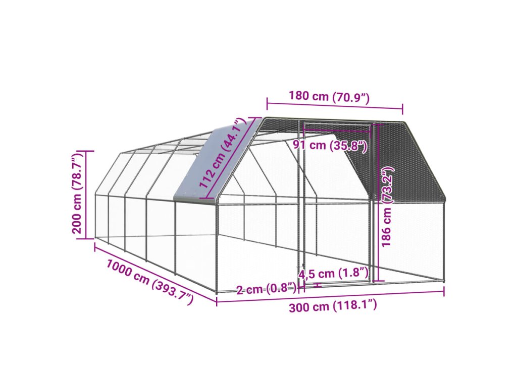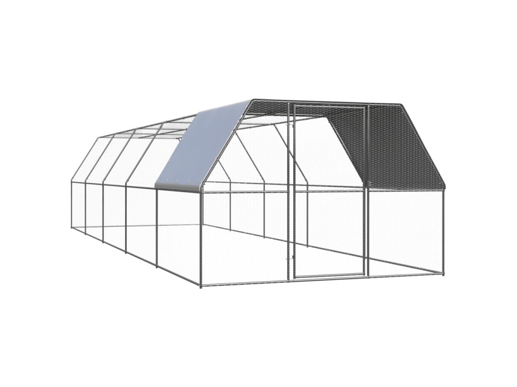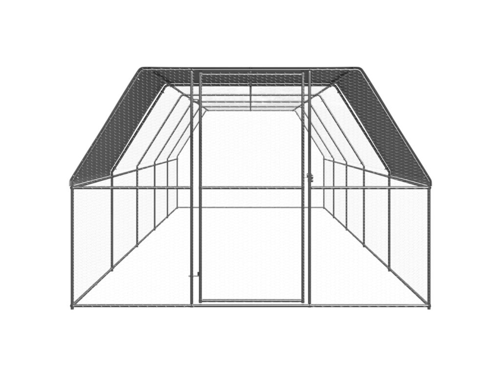 Tento výbeh pre kurčatá je vyrobený z pozinkovanej ocele. Má polyetylénovú strechu, ktorá je odolná voči vode a UV žiareniu. Brána je vybavená zámkom, ktorý zaisťuje mimoriadnu bezpečnosť a ochranu vašich malých zvierat.
