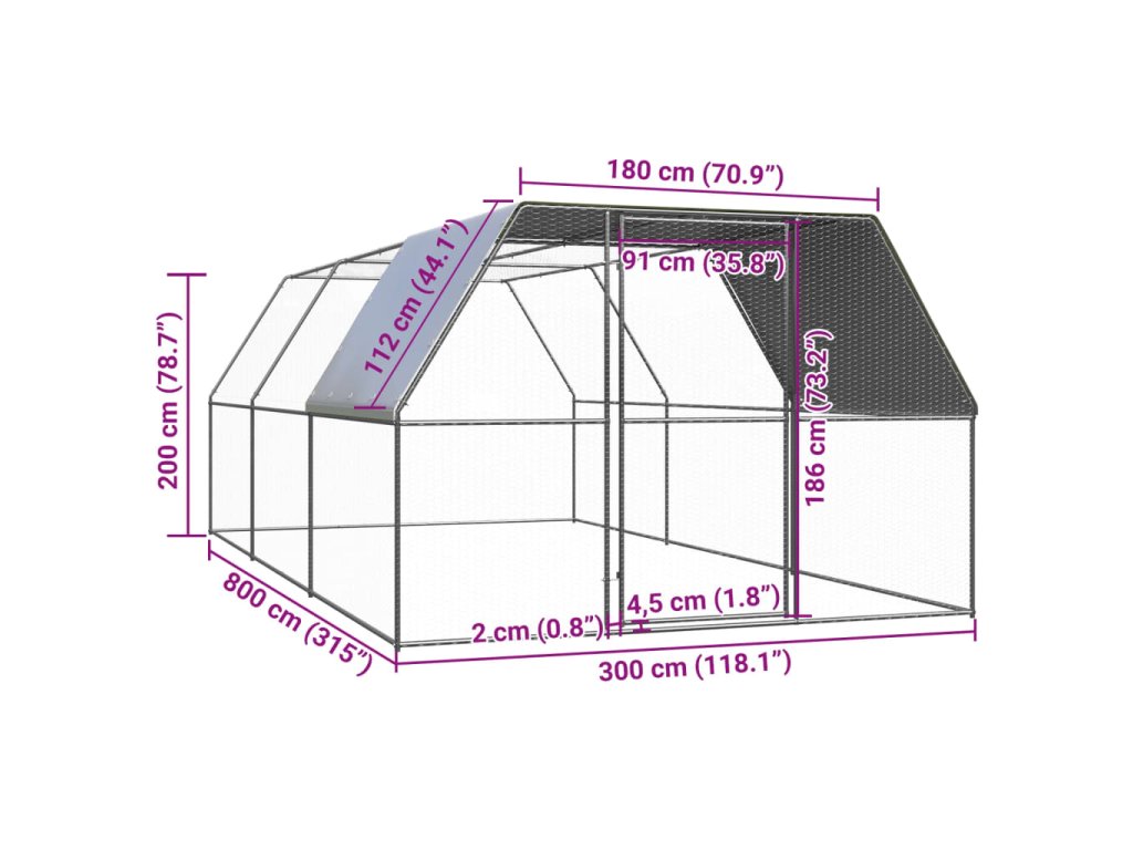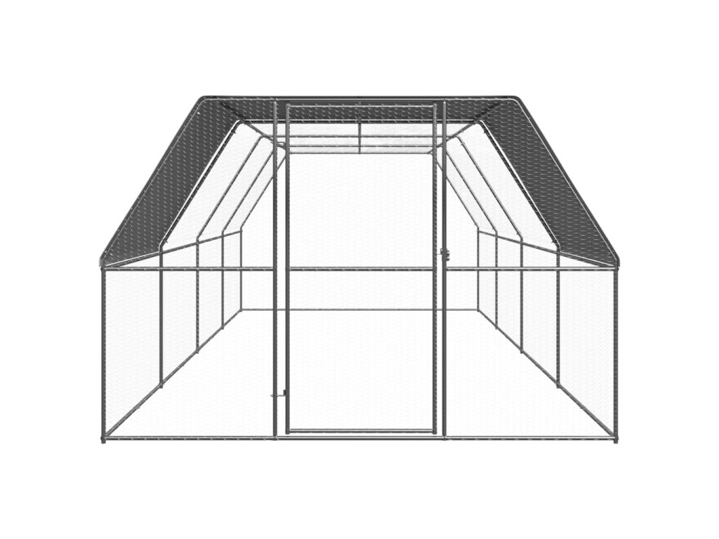 Tento výbeh pre kurčatá je vyrobený z pozinkovanej ocele. Má polyetylénovú strechu, ktorá je odolná voči vode a UV žiareniu. Brána je vybavená zámkom, ktorý zaisťuje mimoriadnu bezpečnosť a ochranu vašich malých zvierat.