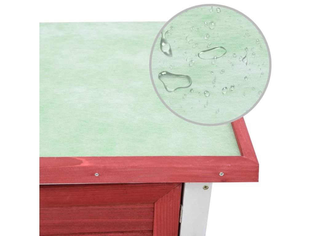 Králikáreň má rám z vysokokvalitného dreva, takže je skutočne pevná, bezpečná a vydrží vám celé roky. Zelená strieška zvieratá ochráni pred dažďom a pohodlný koterec poskytuje príjemné miesto na spanie. Vrchná strieška sa dá otvoriť, aby ste mohli z klietky zvieratá vybrať alebo ich vypustiť von. Z prízemia vedie rampa, po ktorej sa dá ľahko vyliezť na poschodie. Vďaka vyťahovaciemu dnu sa klietka dá bez problémov vyčistiť. Dvierka sa ľahko zatvárajú a dajú sa uzamknúť zasunutím západky.
