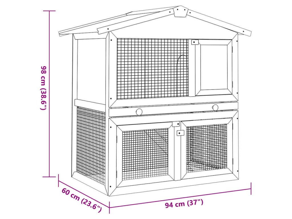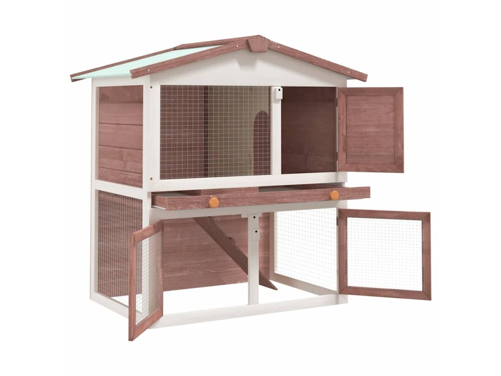 Táto kvalitná dvojposchodová králikáreň poskytuje priestranný a útulný prístrešok pre malé zvieratá, najmä roztomilé králiky. Má naozaj všetranné použitie, pretože predstavuje vhodné miesto na hru a výcvik, no zároveň v nej budú vaše zvieratá v bezpečí.