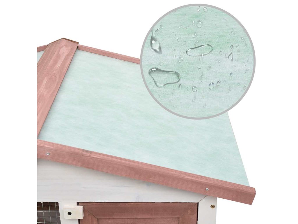 Králikáreň má rám z vysokokvalitného dreva, takže je skutočne pevná, bezpečná a vydrží vám celé roky. Zelená strieška zvieratá ochráni pred dažďom a pohodlný koterec poskytuje príjemné miesto na spanie. Z prízemia vedie rampa, po ktorej sa dá ľahko vyliezť na poschodie. Vďaka vyťahovaciemu dnu sa klietka dá bez problémov vyčistiť. Dvierka sa ľahko zatvárajú a dajú sa uzamknúť zasunutím západky.
