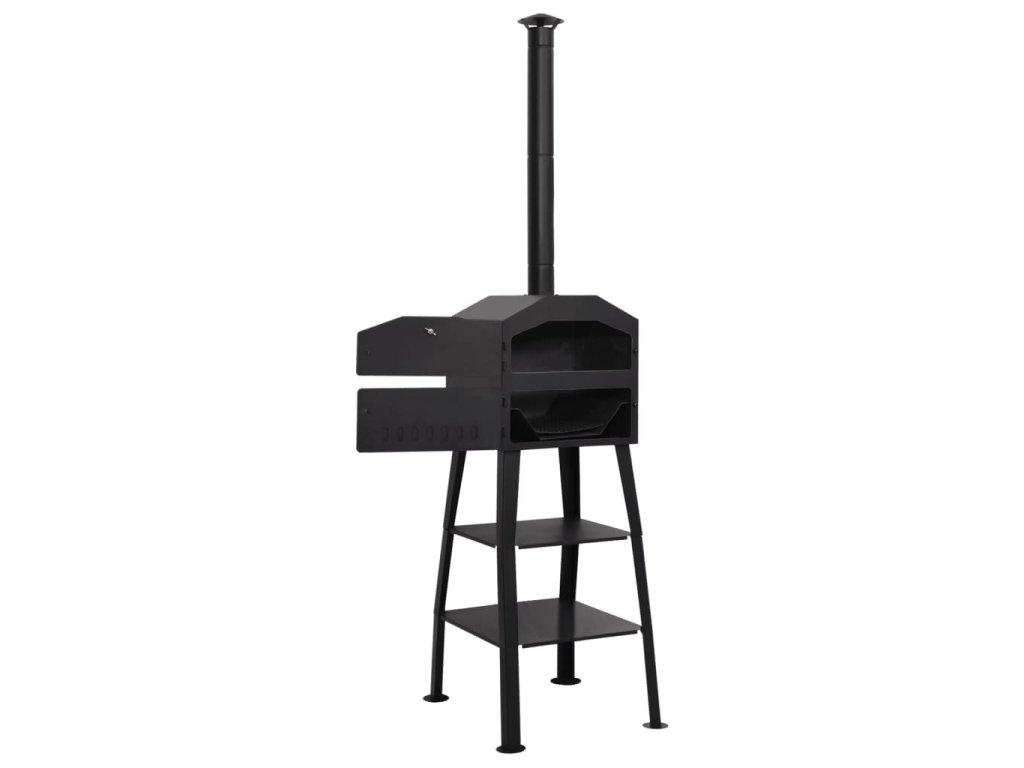 Do tejto samostatne stojacej pece môžete dávať všetky typy dreveného uhlia. Odnímateľný podnos na uhlie sa dá rýchlo a ľahko očistiť. Vrchný priečinok je určený na pečenie a jeho povrch tvoria dve žiaruvzdorné (šamotové) tehly, ktoré rovnomerne rozvádzajú teplo vo vnútri pece a odolávajú teplotám až do 1300°C. Tehly sa tiež postarajú o to, aby sa do pripravovaného jedla nedostával popol a prach, ktorý vyletuje z ohňa. Dve poličky v spodnej časti pece poskytujú praktické miesto na odkladanie rukavíc a iných potrieb. Pec sa navyše dodáva so zabudovaným teplomerom.